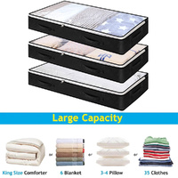 3Pcs Underbed Storage Bag Foldable Clothes Bag Large Capacity Storage Containers-Black
