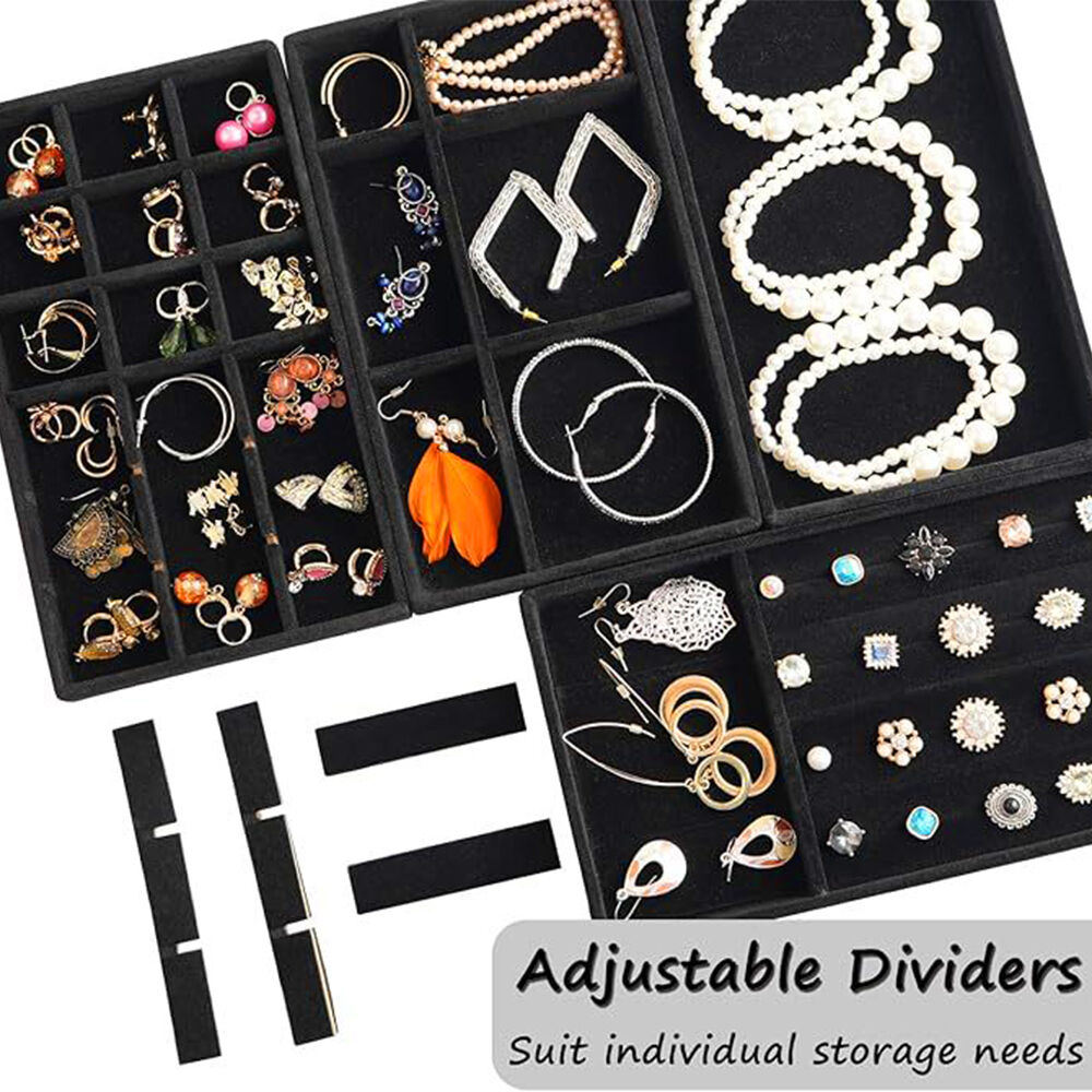 • Stackable and adjustable : All these trays are easy to stack,take less space while can storage much;dividers in the grid trays can be removed so that you can adjust the grid to fit your different size jewelry.