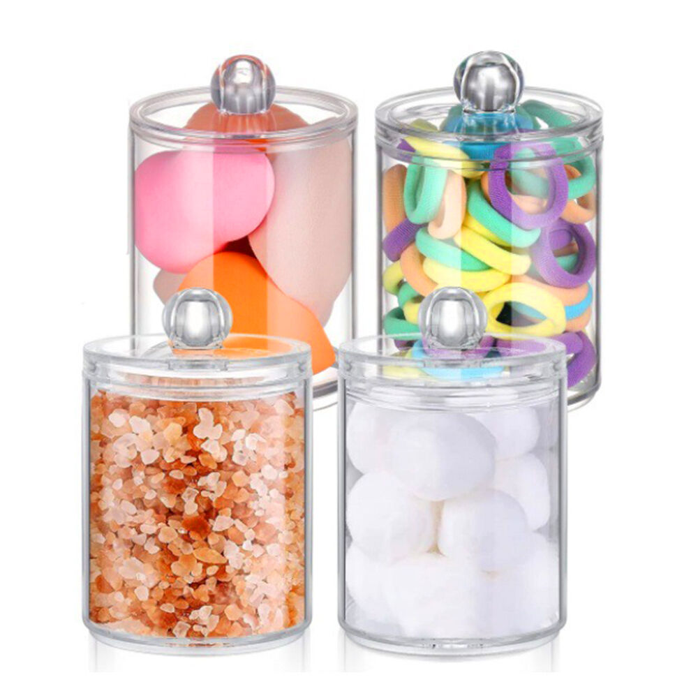 • Bathroom organizers and storage:Ideal size bathroom storage containers,these canisters are perfect organizer for objects,such as qtip, cotton ball, cotton swab, cotton rounds, floss picks, tampon, bath salts, hair tie band, makeup brush, beauty egg, face brush, crayons, candy, clip and more things,as excellent organization canisters, keep bathroom and vanity them neat & clean.