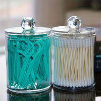 • Crystal-clear clarity:The jar is made of plastic, thick but clear plastic have a glass or acrylic-like appearance, but it offers a better resistance to cracking or breaking than glass does if dropped, the handle is designed with round beads,dust and easy to open and close,the qtip holders are also a perfect modern bathroom set.