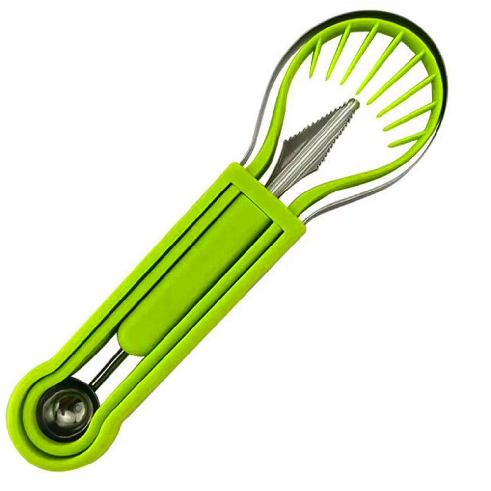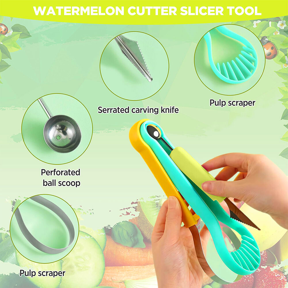 • 4 in 1 stainless steel fruit tool set: Unique design, function includes melon baller scoop set for digging, carver knife for fruit carving tools, 2 size watermelon scooper for removing and digging flesh of fruits and vegetables