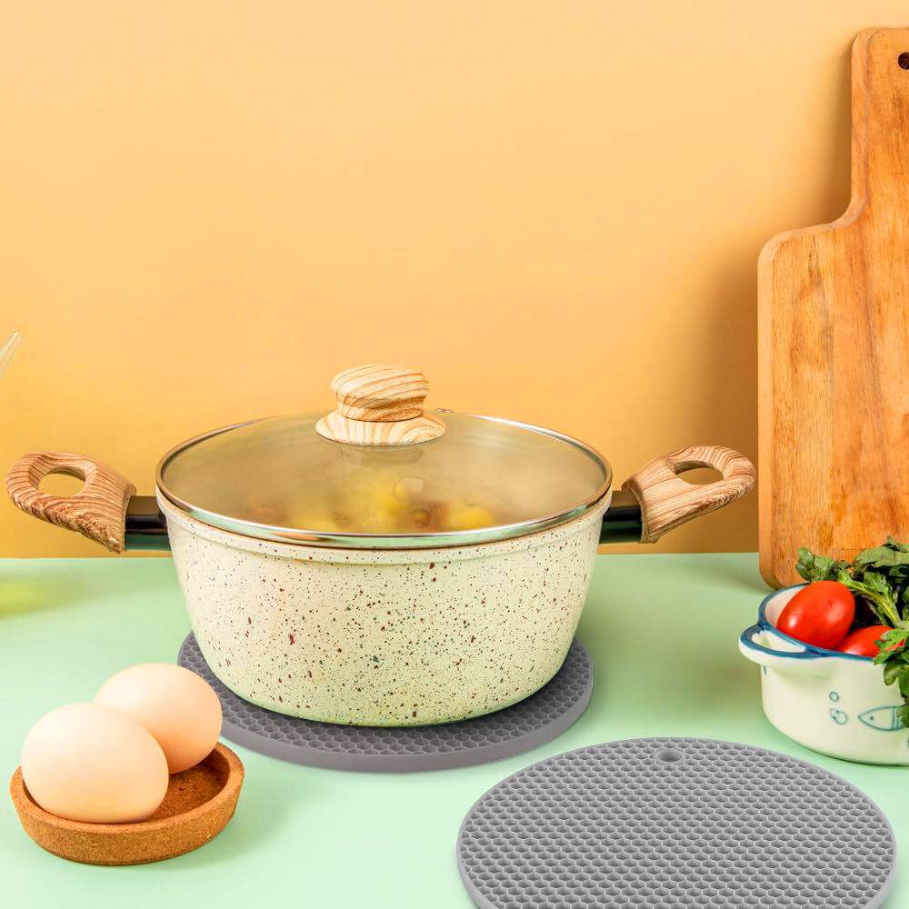 Silicone pot holders very flexible, great to grab, tensile property is good and the service life is long. Honeycomb designed silicone hot pads set takes over the water and with great texture prevent water droplets from counter and anti-slip and also easy to dry by squeezing out or shaking. Easy to clean, safety wash in dishwasher, waterproof, each mat with a hole for easy hanging.