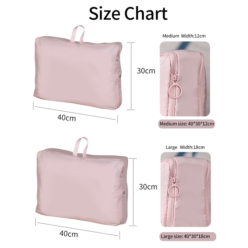 • Space-saving: After putting the clothes into the compression bag, you only need to zip up the zipper to compress the clothes, which can save about 40% of the space. There will be more space in the trunk and closets to use.