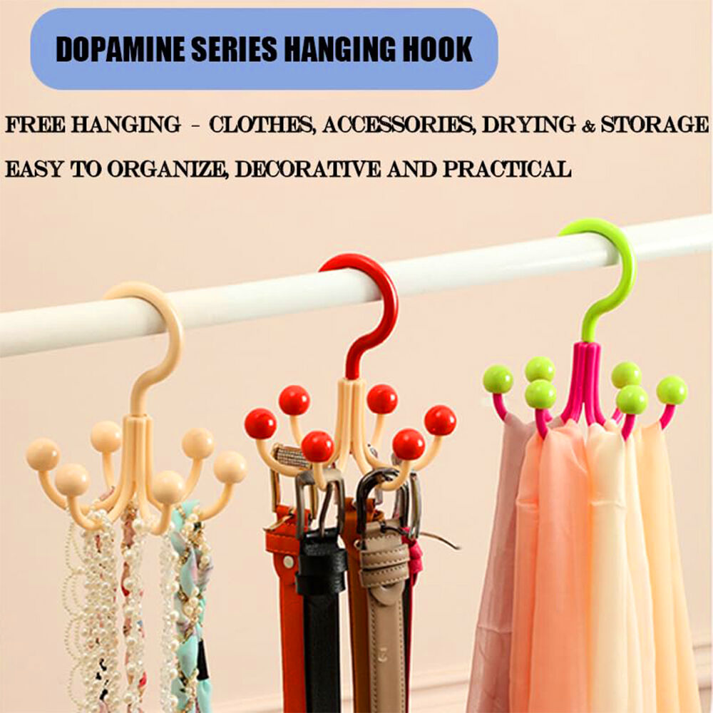 • Multi-purpose storage hooks:Each hanger has 6 rounded claws that can hold scarves, belts, handbags, jewelry, hats, towels, ties, keys, headbands, socks, or kitchen supplies. Great for wardrobe organization, bathroom storage, kitchen racks, or bedroom accessories.
