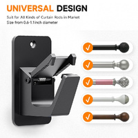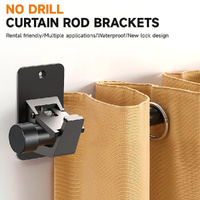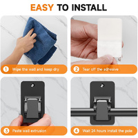 4 Pack Universal Self Adhesive Curtain Rod Holders Nail Free Curtain Rod Hooks-Black