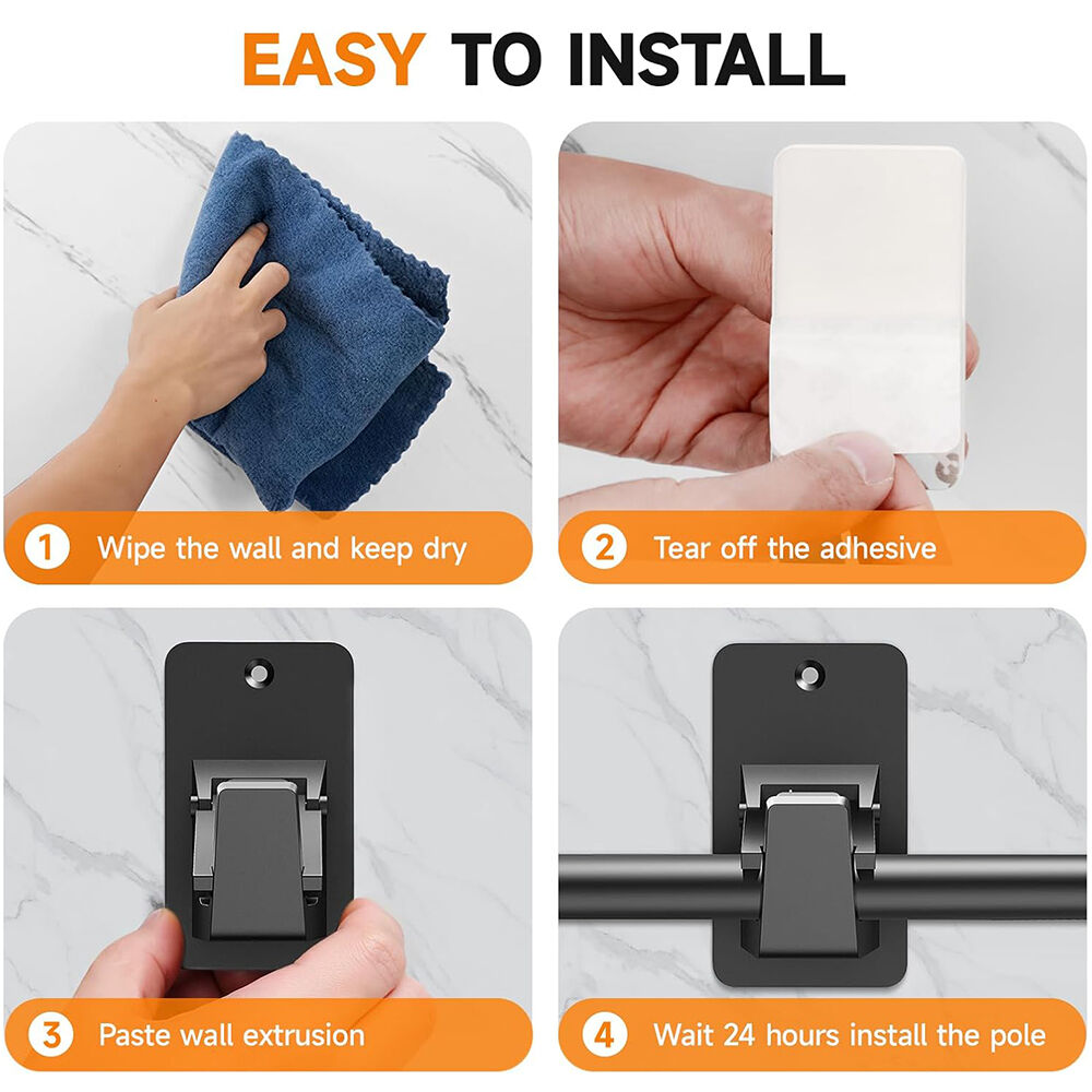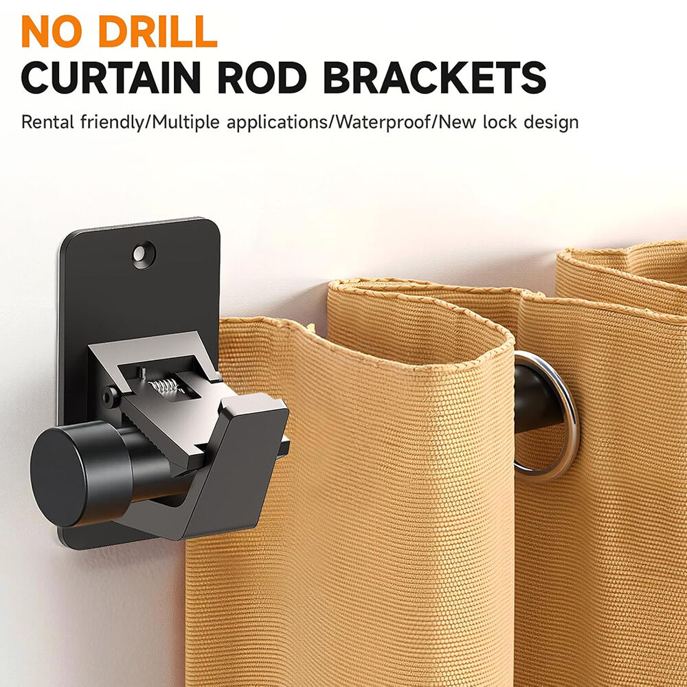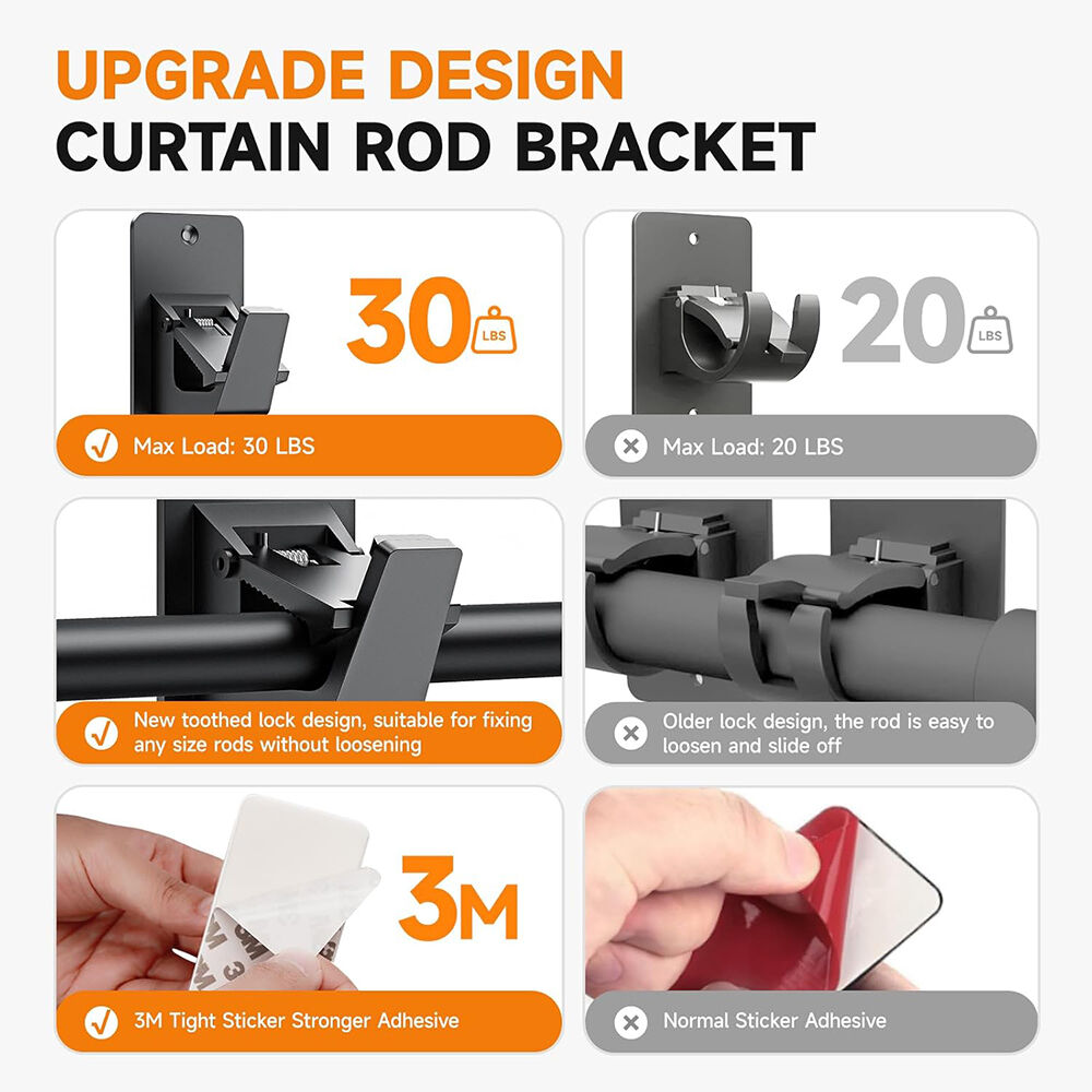 • 3M Adhesive Universal No Drill Curtain Rod Bracket: 3M adhesive, the curtain rod bracket can be easily installed without drilling, avoiding wall damage. Suitable for smooth surfaces such as tiles, glass, metal, etc. with a load capacity of up to 20 pounds, it is very suitable for renters and families who do not want to damage the wall.