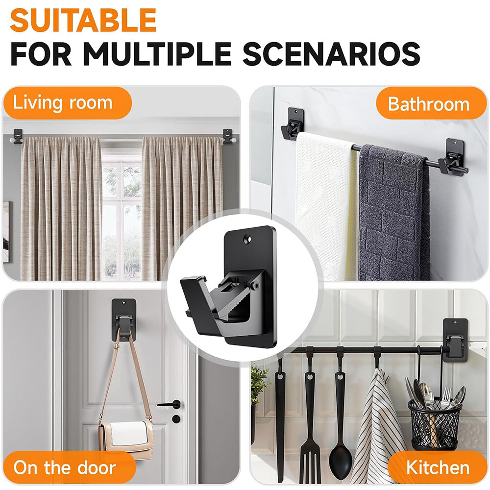 Not only a curtain rod bracket, but also can be used as a bathroom towel rack, kitchen hook, bedroom hanger, suitable for a wide range of scenarios. Hang towels, clothes, hats, umbrellas and other small accessories to help you organize your space better.