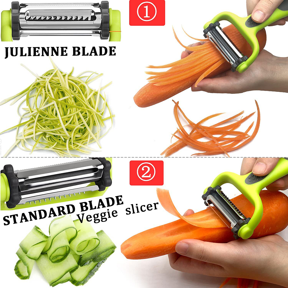 2Pcs 3 In 1 Rotary Peeler Fruit Vegetables Slicer Kitchen Multifunction Grater Julienne Peeler