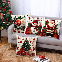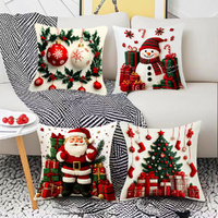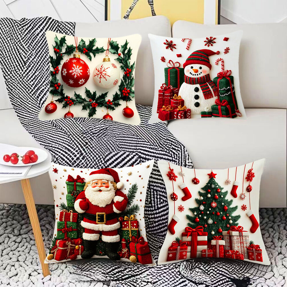 4 Pcs Christmas Cushion Cover Xmas Tree Santa Claus Pattern Xmas Pillow Covers