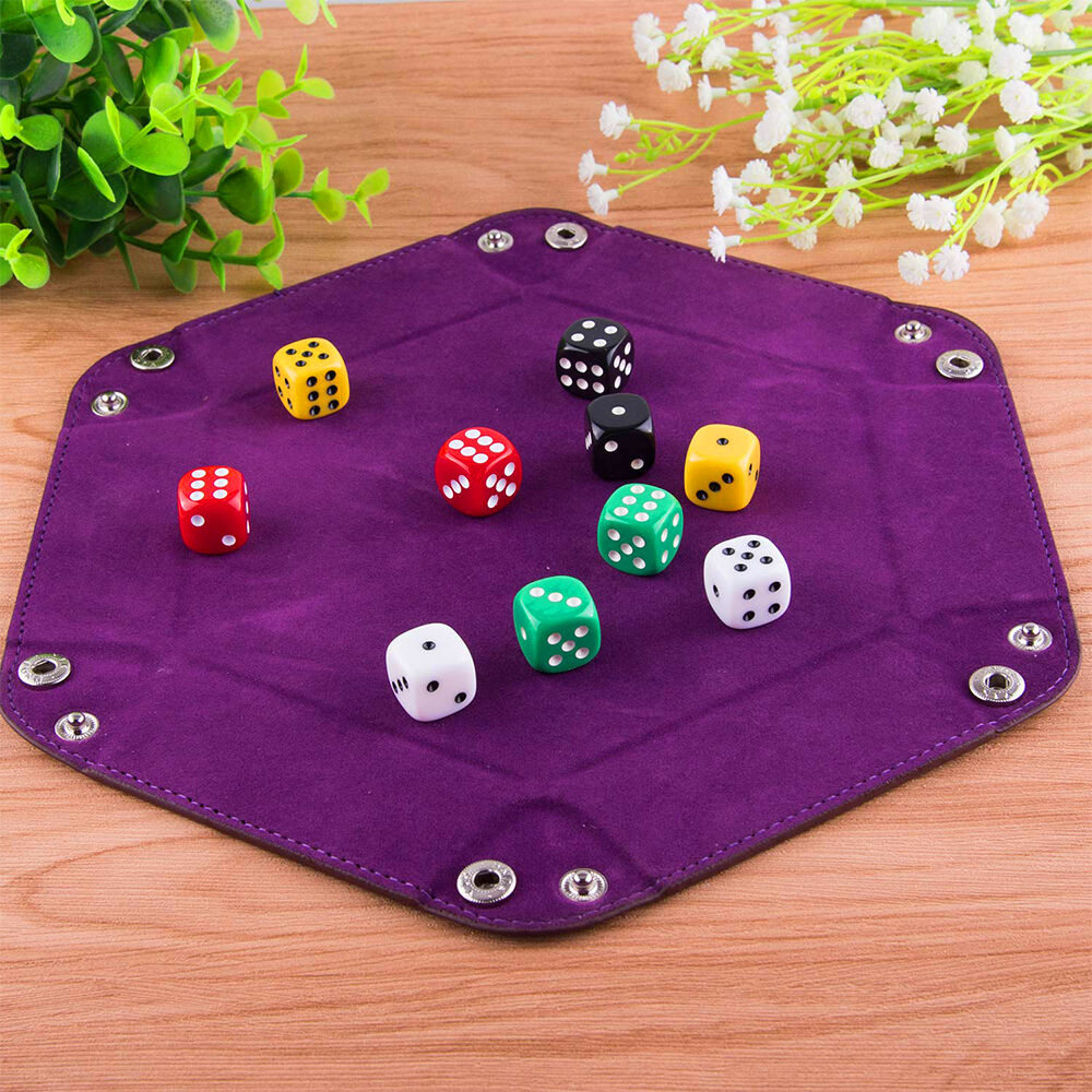 This dice tray has six buckles, which are easy to fold and unfold prevent the dice from flying out of the table ,easy to clean.great to hold dices, rolling dice hold watches, jewelry, keys, coins, candies, snacks and other accessories