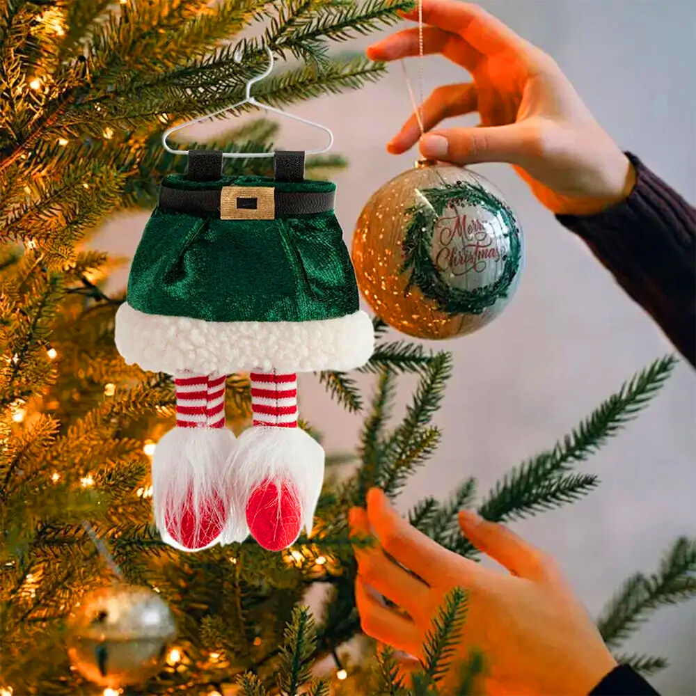 The Christmas tree accessory features a striking green and red leg design, creating of elves hitting the tree, adding a whimsical that is very eye-catching and adds a creative to your holiday decorations.