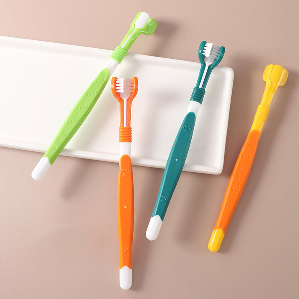 4Pcs 3-Sided Pet Toothbrush Dog Plastic Toothbrush Cat Cleaning Mouth Toothbrush