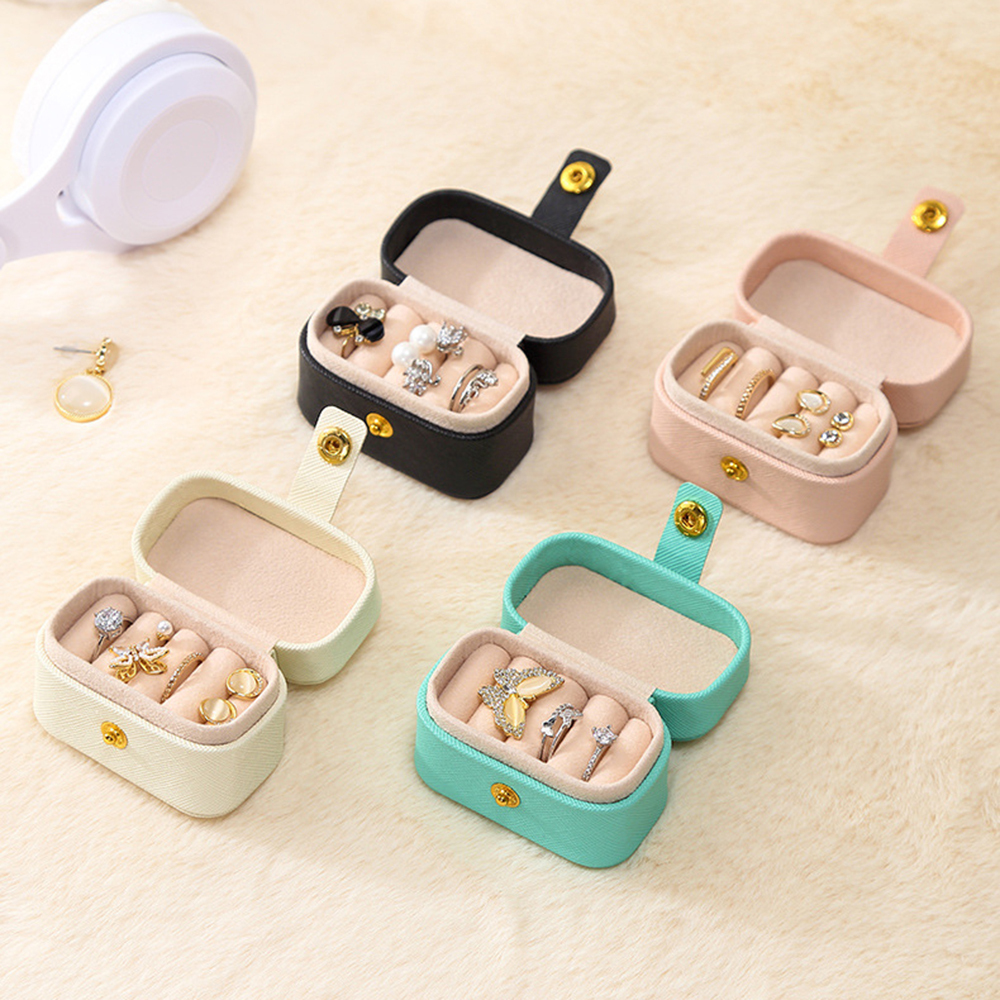 4Pcs Portable Mini Jewelry Box Travel Earrings PU Leather Jewelry Storage Case