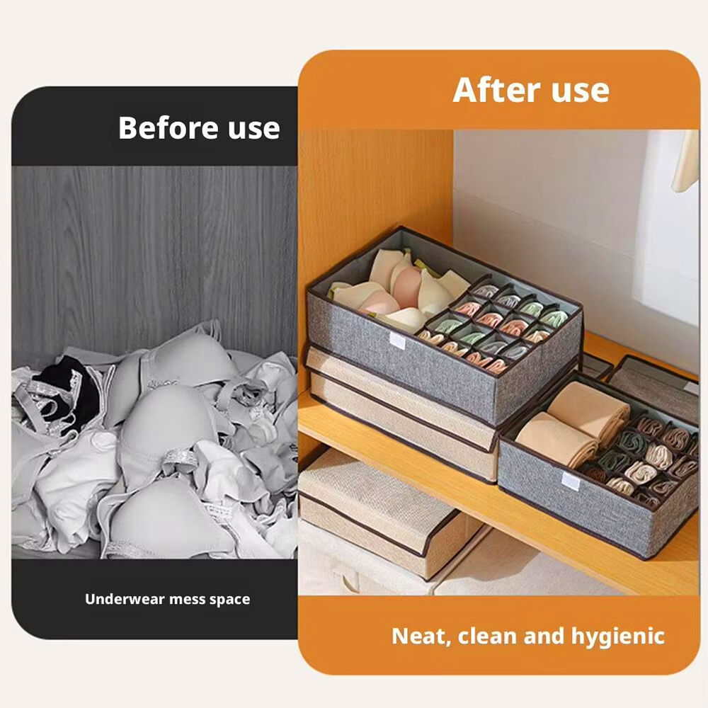 4 x Underwear Organizer(2 Gray 13+17 grids,2 Khaki 13+17 grids)