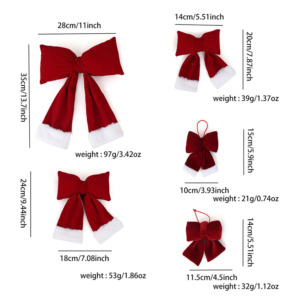 5 Pack Christmas Bow Decoration Red Bow Knot Hanging Ornaments Xmas Tree Decor