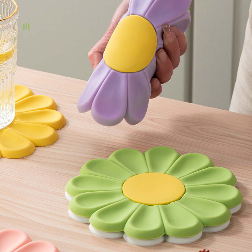Silicone non-slip design, heat insulation and anti-scalding effectively protect the tabletop, the daisy shape decorates the tabletop, making your table beautiful