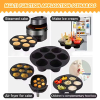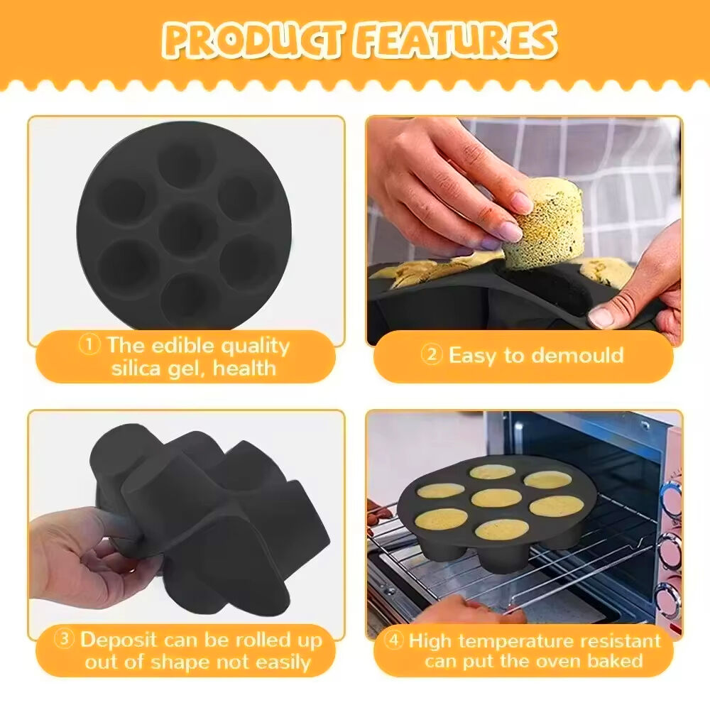 You will get 5 pcs round 7 holes air fryer egg pans, this pan distributes heat evenly, you can easy baking more healthy delicious foods, saving you time and effort.