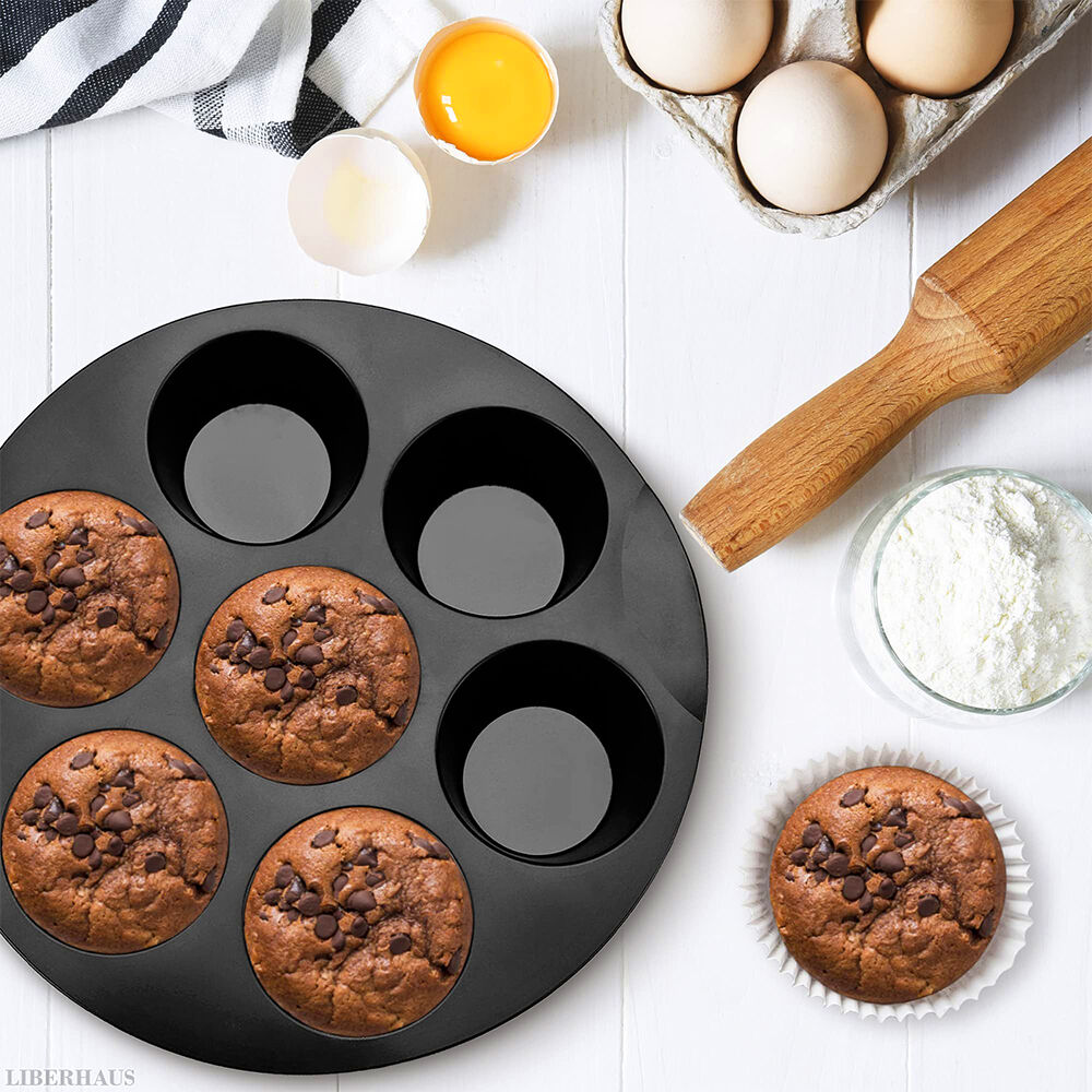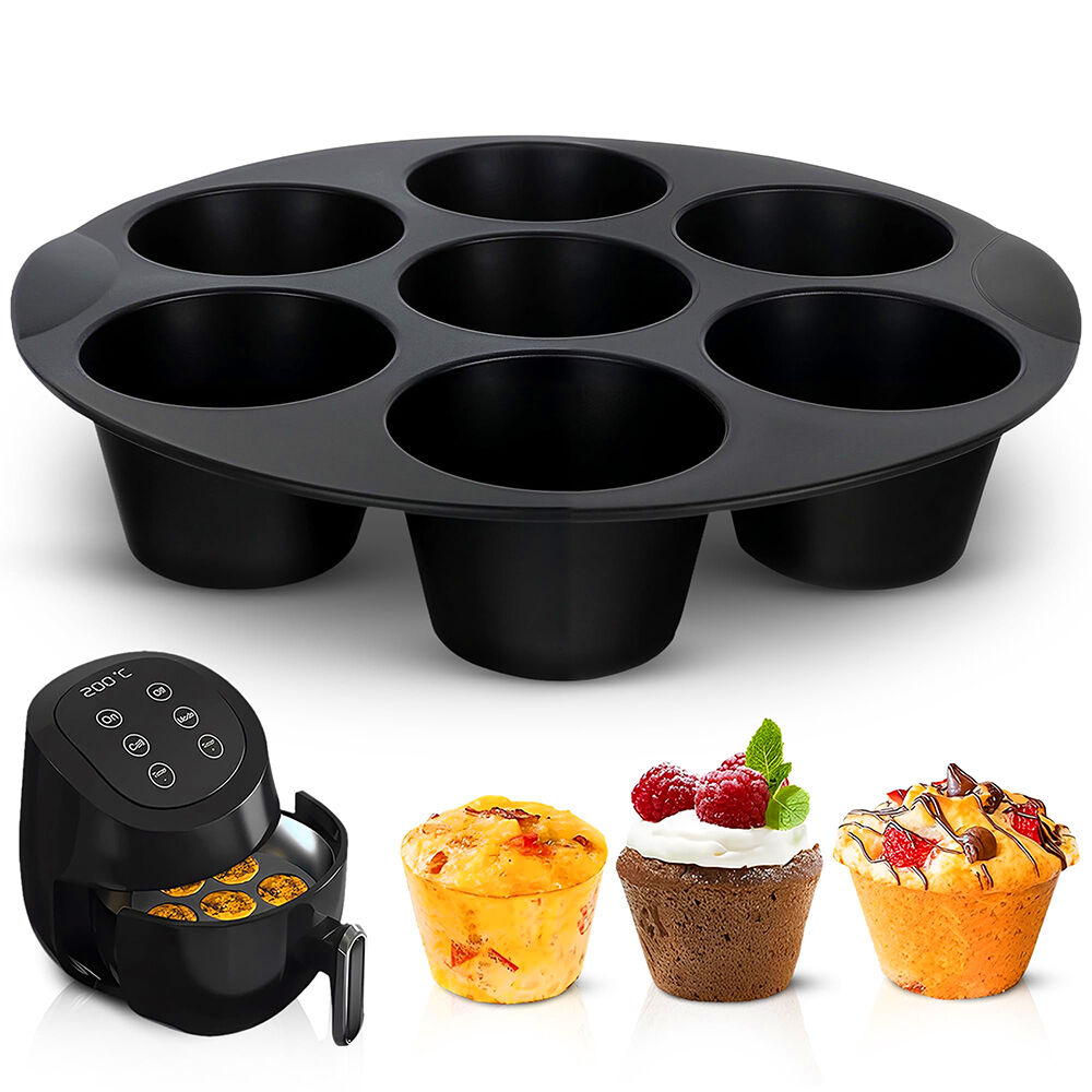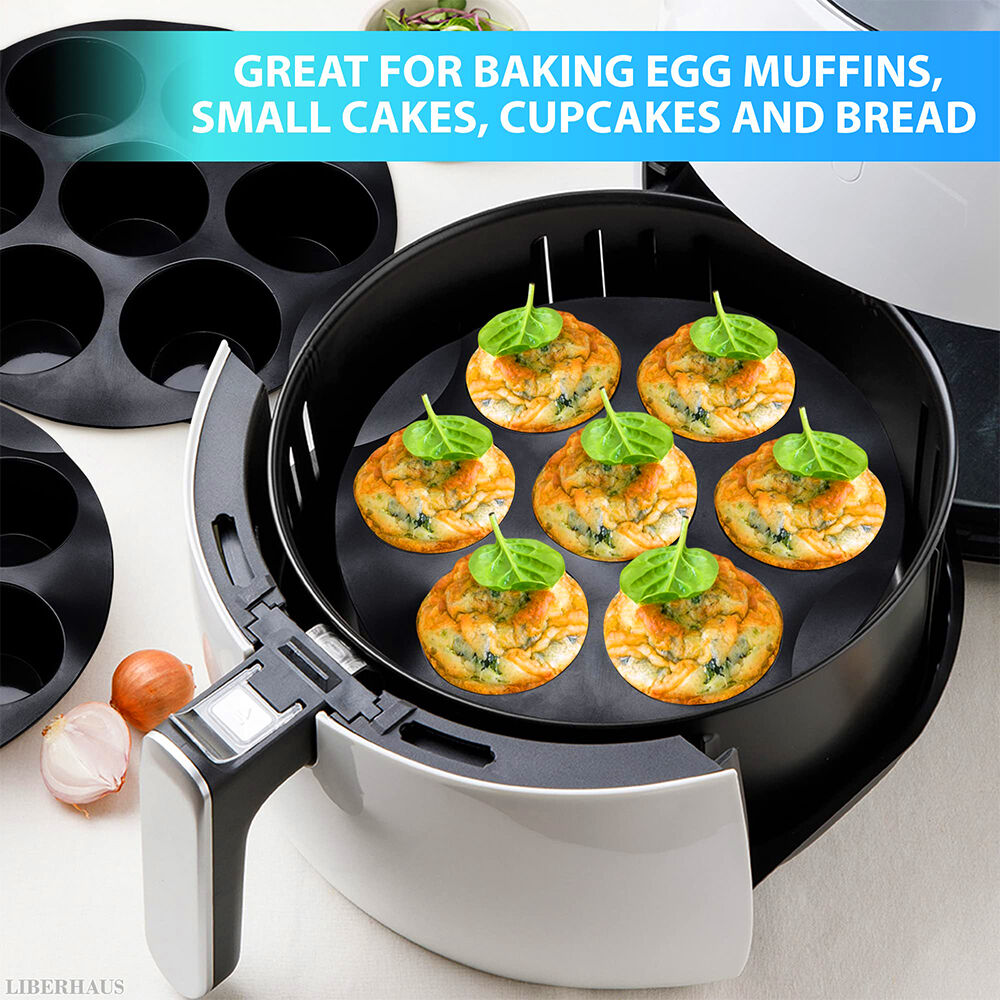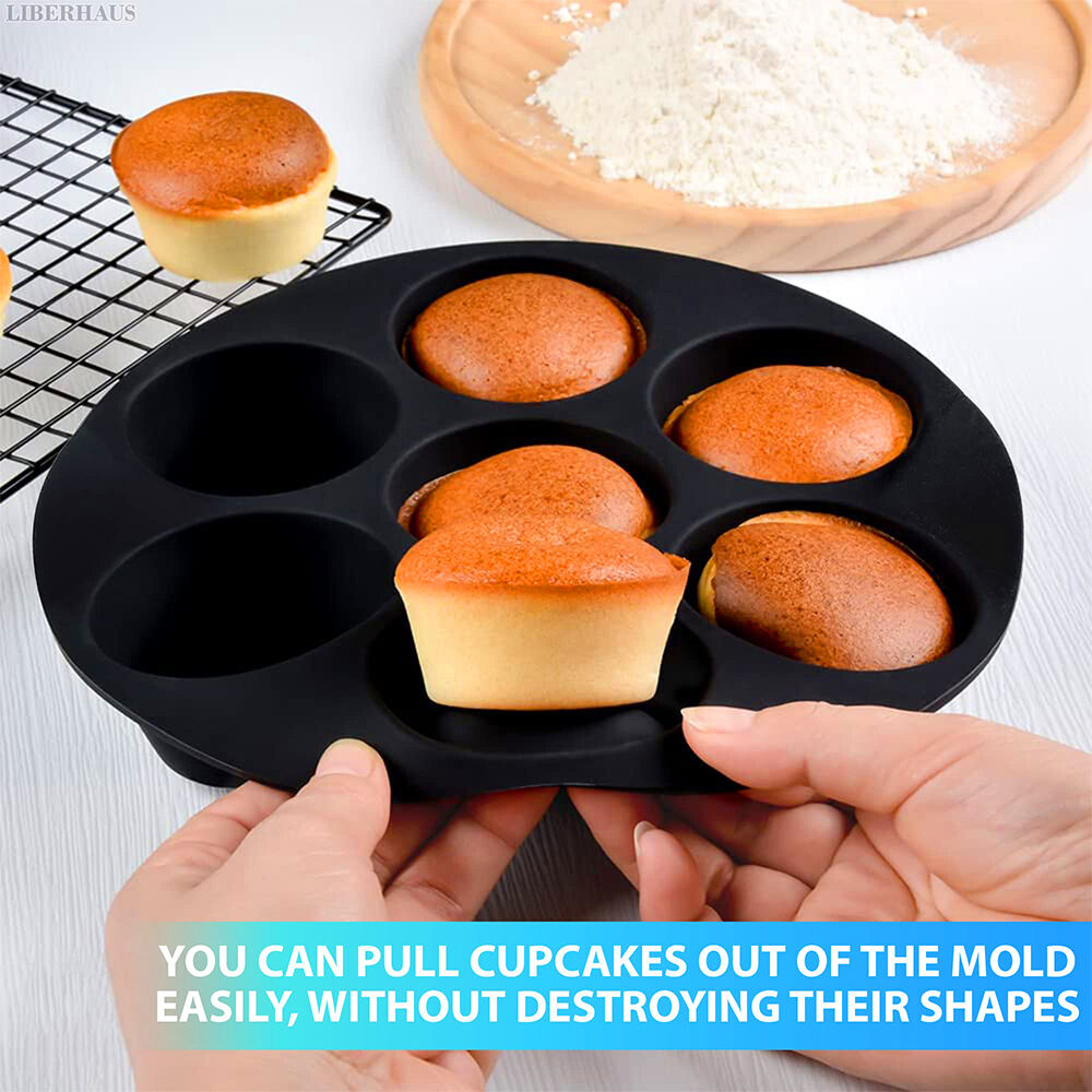 • Compact round design: The silicone muffin pan has diameter:17.5cm,round shape that fits most air fryers and cabinets, while also functioning as a space-saving silicone muffin pan for daily use