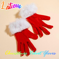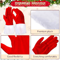 5 Pair Velvet Christmas Gloves Red Short Santa Costume Gloves For Women And Girls