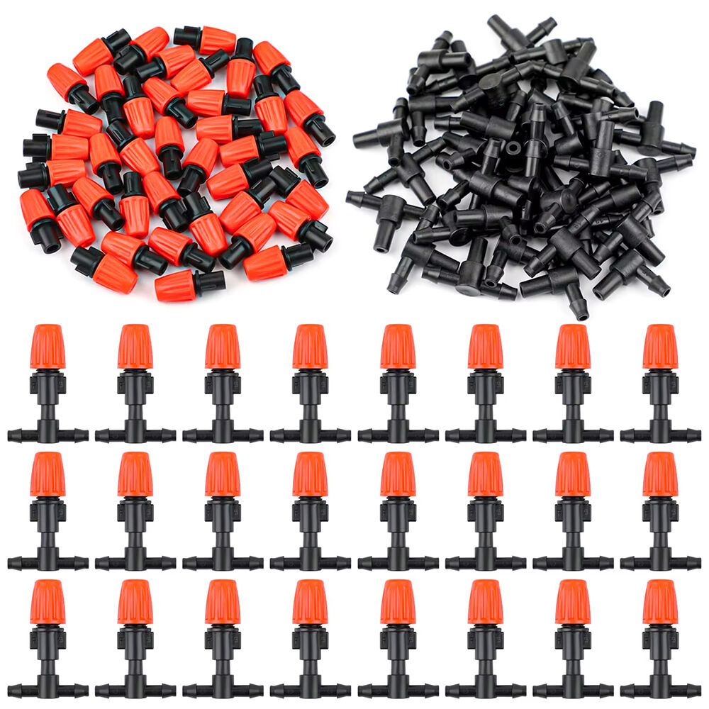 50pcs Adjustable Flow Micro Spray Drippers Garden Irrigation Sprinkler Heads With Tee Connectors