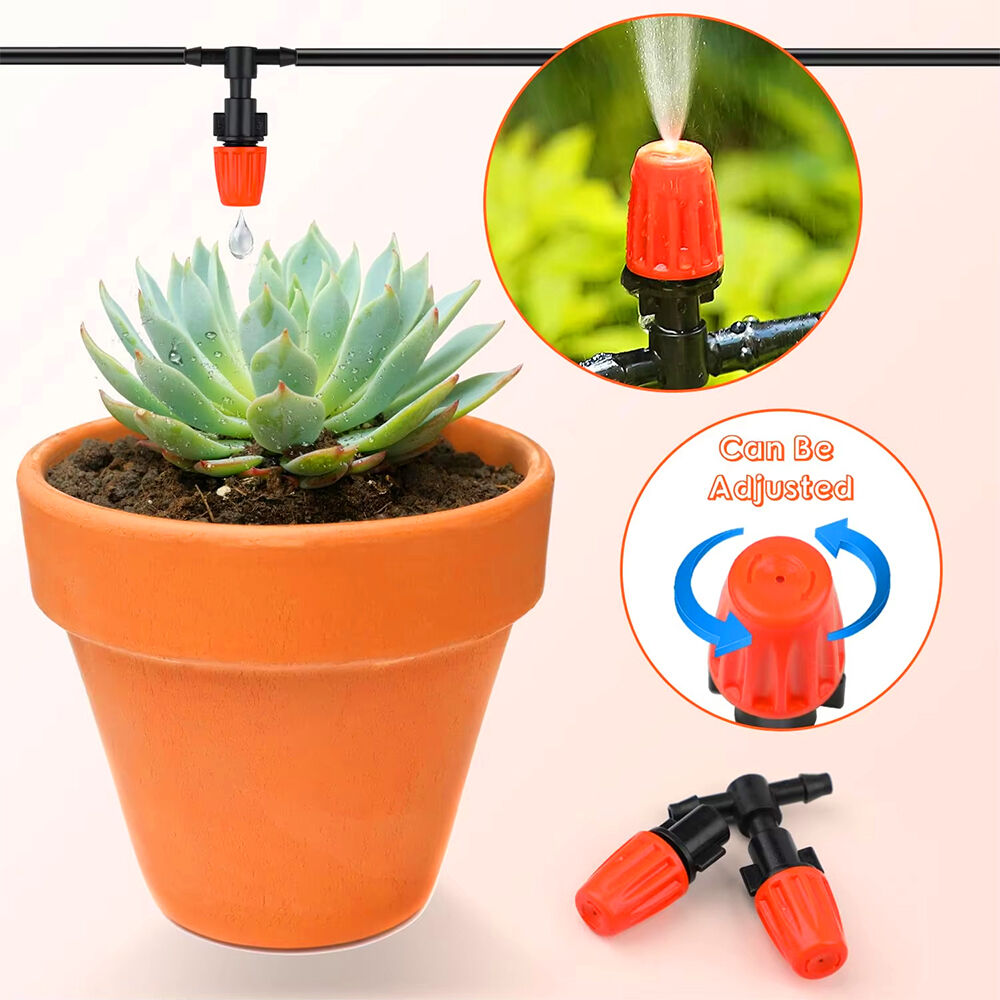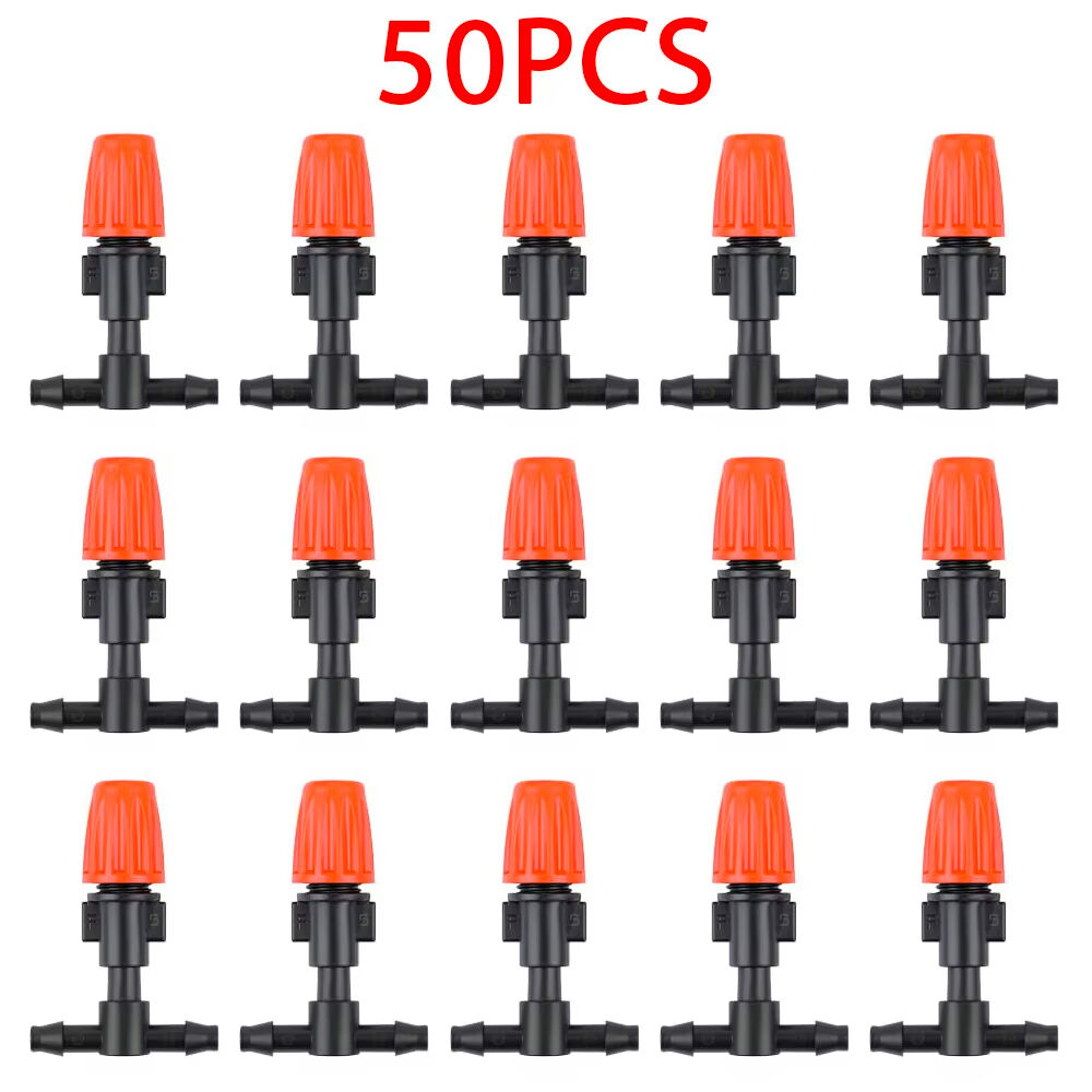 • 50-pack adjustable drip emitters with 50 tee connectors:Includes 50 micro spray drippers + 50 tee connectors, perfect for creating a customized irrigation system for gardens, patios, or greenhouses.
