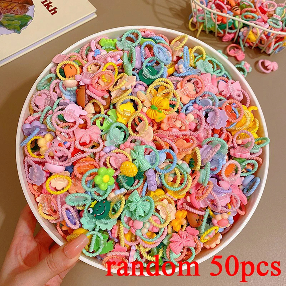 50Pcs Children Hair Accessories Girls Cartoon Elastic Hair Bands Girls Head Rope