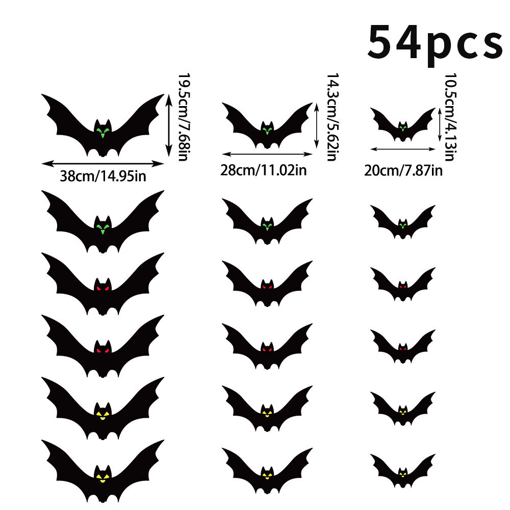 • Package includes:3pack,18pcs/set Halloween bat decorations,it contains 54 bat decorations in 3 different sizes, 18 bats each