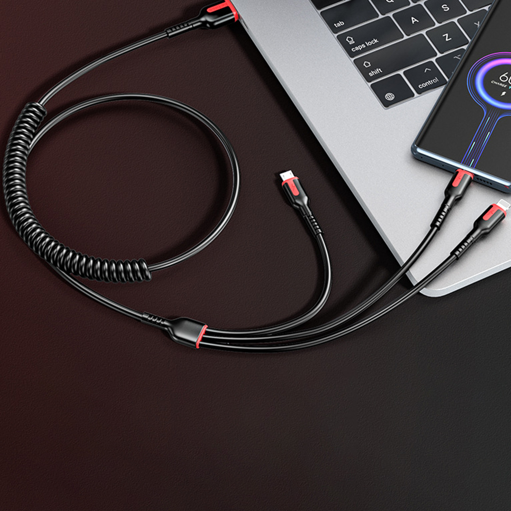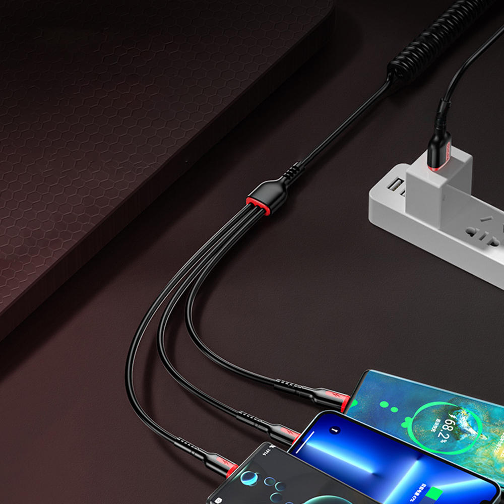 With creative three in one design, multi USB cable works with All USB Type-C/micro USB/ Lightning devices, no need to carry any other charging cables when you are in a car, office, or travelling.