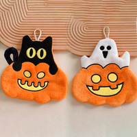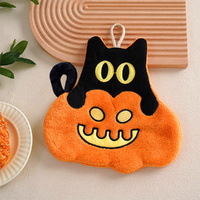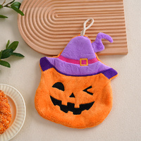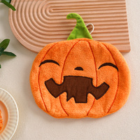 5pcs Pumpkin Hanging Hand Towel Set Coral Fleece Kitchen Towel For Halloween