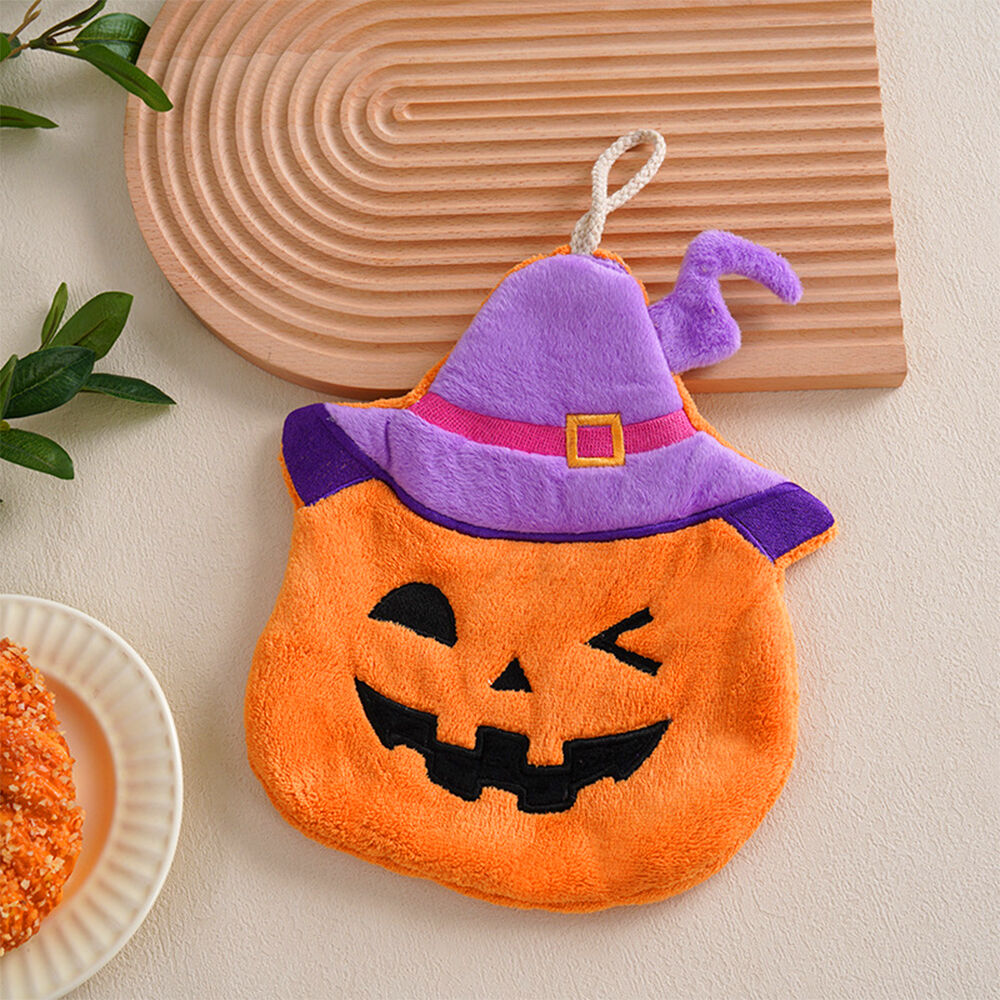 Featuring a classic pumpkin shape with a whimsical smiling and blinking face, our pumpkin hand towels leave a lasting impression; ideal for Halloween decor
