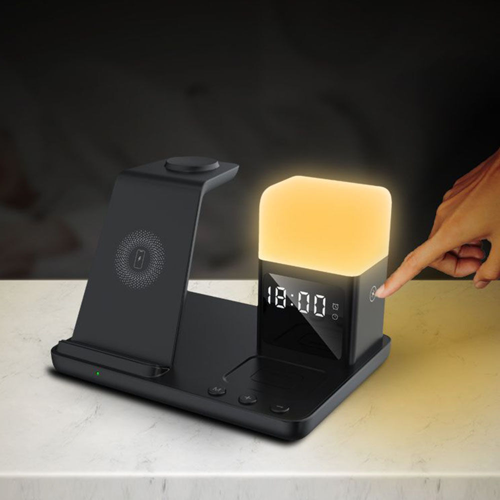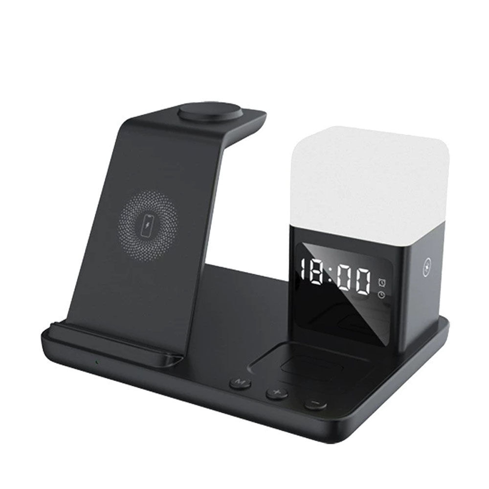 - Digital Clock & Alarm Clock & Adjustable Night Light: The digital Military Time display clock of the phone wireless charging station has the alarm function. The light of the night light is equipped with three different colors: warm light, natural light and cold light, you can adjusted by touch control.