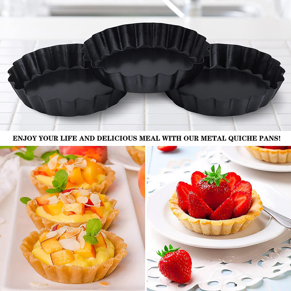 6 Pack 4 Inch Carbon Steel Mini Tart Molds for Quiche Cheese Cakes and Desserts