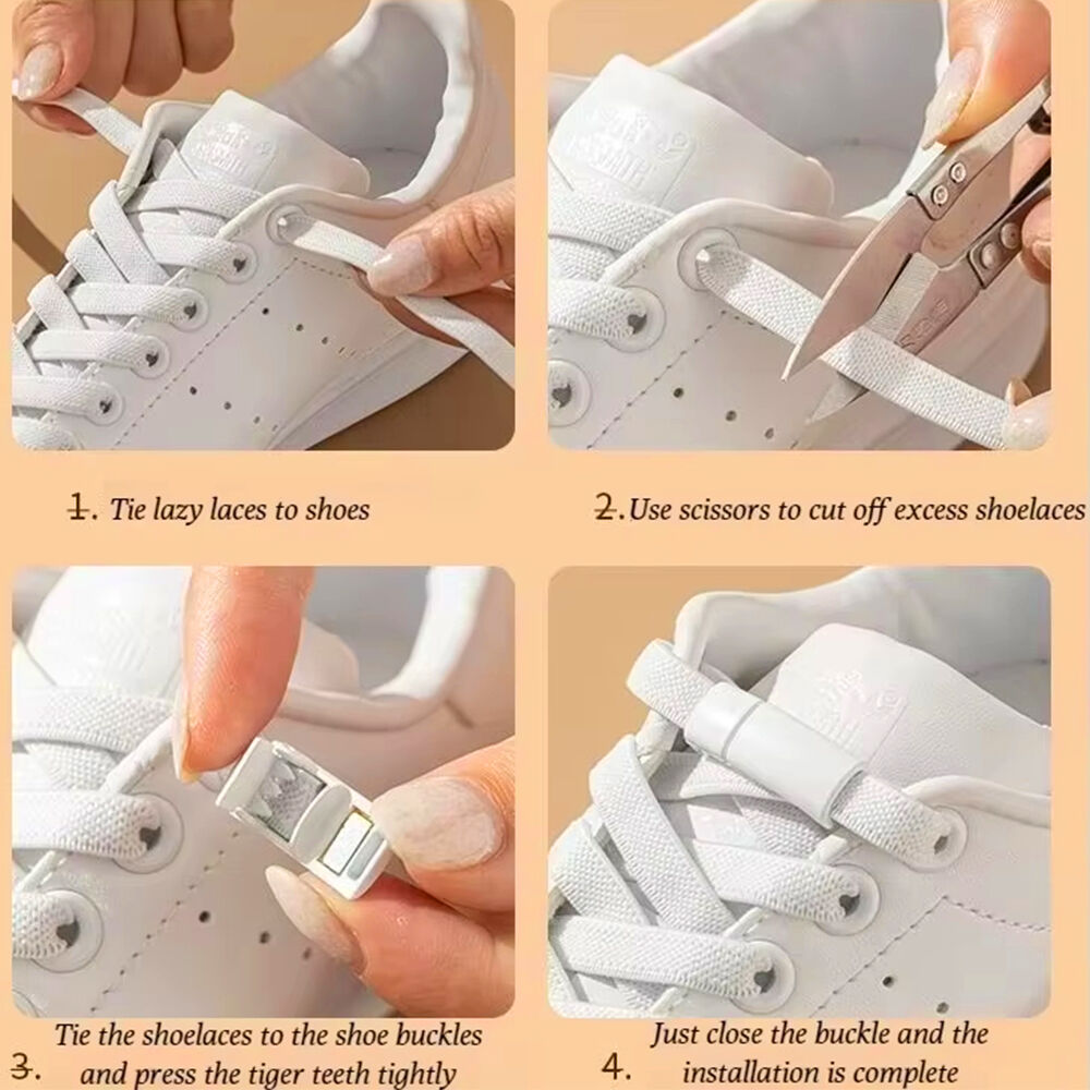 Our elastic shoe laces just wear a shoe string and tie the knot and tighten the lock, it is very convenient. Fasten once and never tie your shoes again