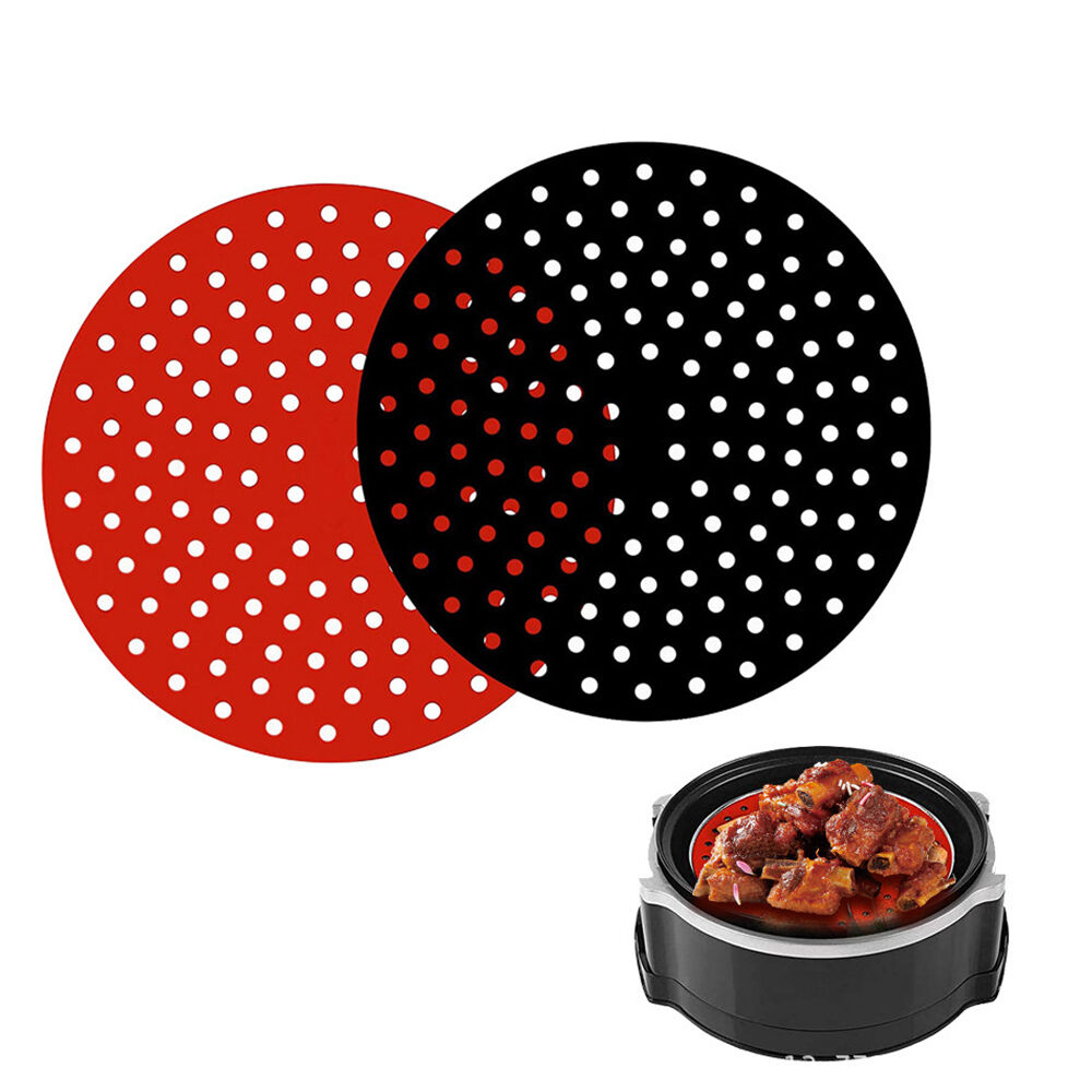 The silicone air fryer pad is non-stick and it keeps food from sticking to your air fryer basket, racks or trays. Silicone liners also protect and extends the life of your air fryer baskets and trays.