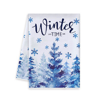 6pcs Blue Christmas Kitchen Towels Reusable Xmas Tree Decorative Hand Towel