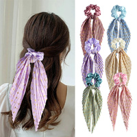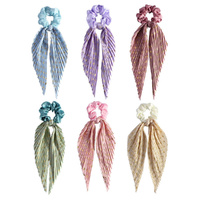 6Pcs Handmade Crease Scrunchie Women's Retro Ribbon Ponytail Hair Tie Hair Accessory