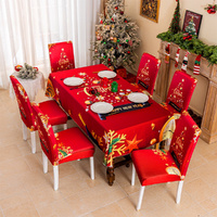 7 x Christmas Tablecloth Chair Set :(6 Pcs Chair Cover + 1 Pcs 140x220cm Table Cloth)