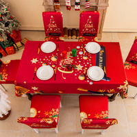 7pcs Christmas Tablecloth Chair Protector Cover Washable Table Cover Set