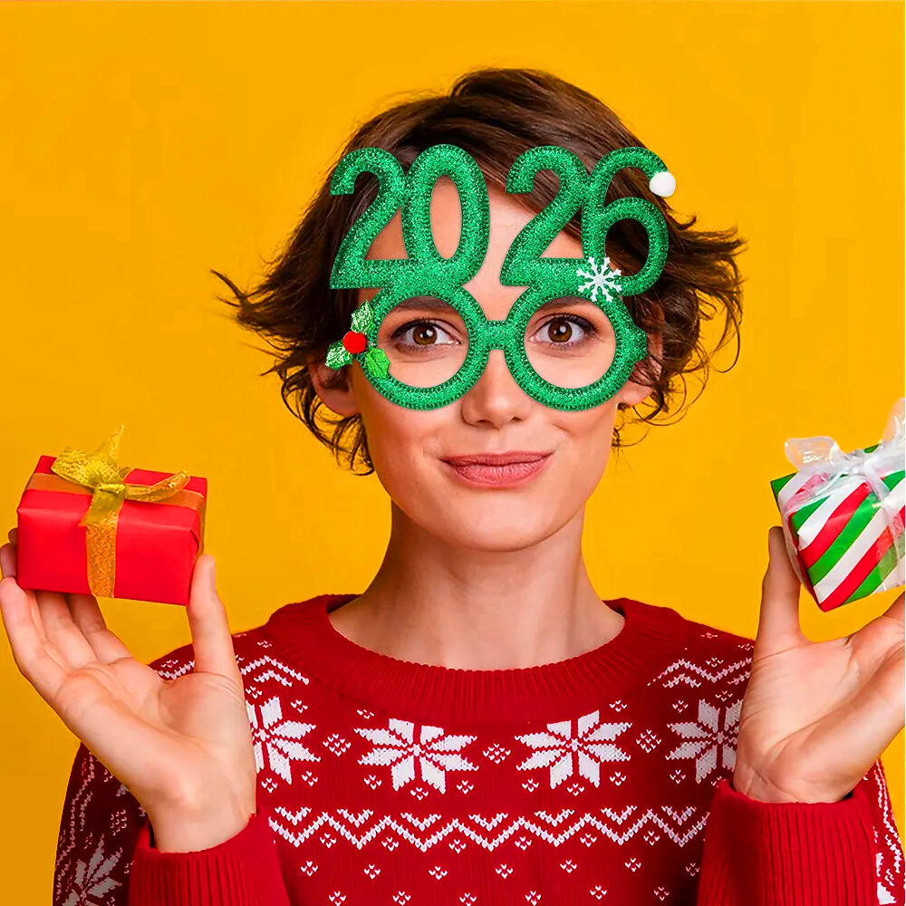 New year number eyewear with classic Xmas elements and bright color design can help create a joyful and warm Xmas party vibe,new years eve eyeglasses,makes for a unique and unexpected party or Christmas present,glasses for Christmas