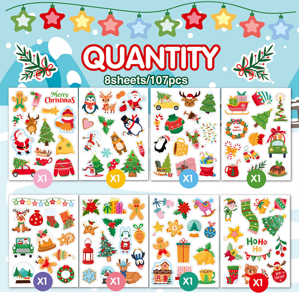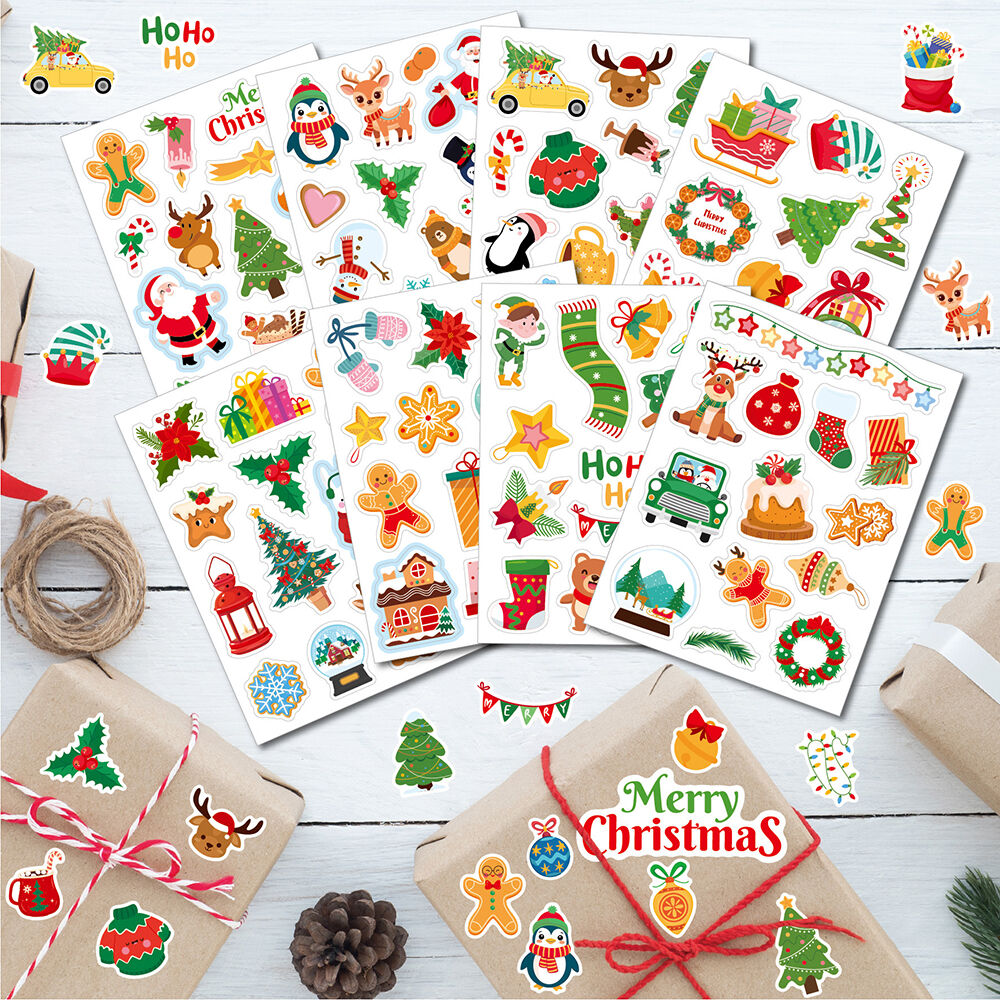• You will receive 8 sheets delightful Christmas stickers, featuring a different enchanting designs that capture the magic of the holiday season. From jolly Santato twinkling ornaments and cozy winter scenes, these stickers bring the essence of Christmas to life.