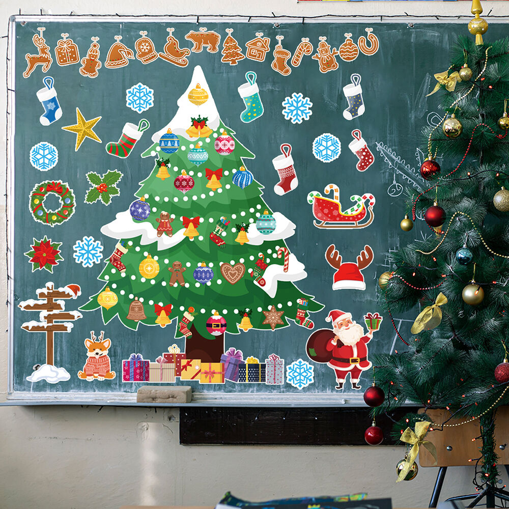 80Pcs Christmas Bulletin Board Decorations Xmas Tree Wall Sticker Holiday Decor