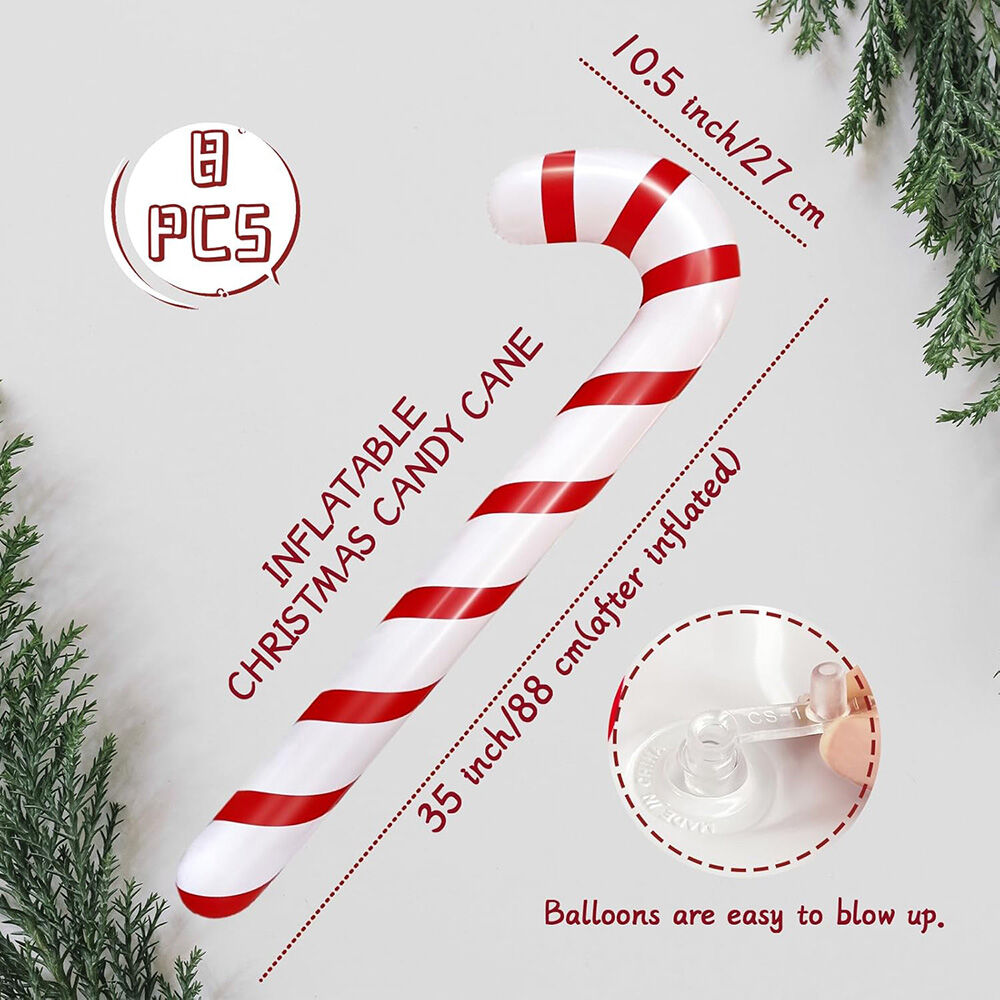 8Pcs 88cm Inflatable Candy Canes Christmas Decorations Jumbo Candy Canes Balloons
