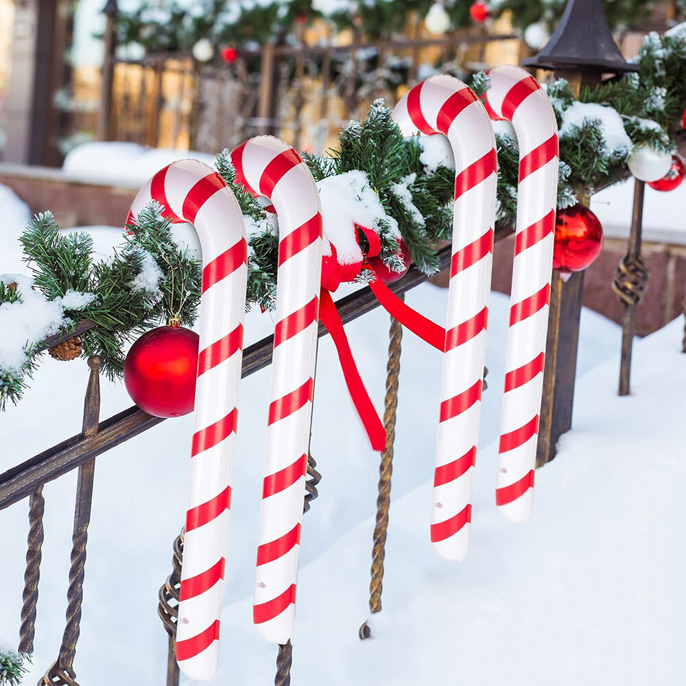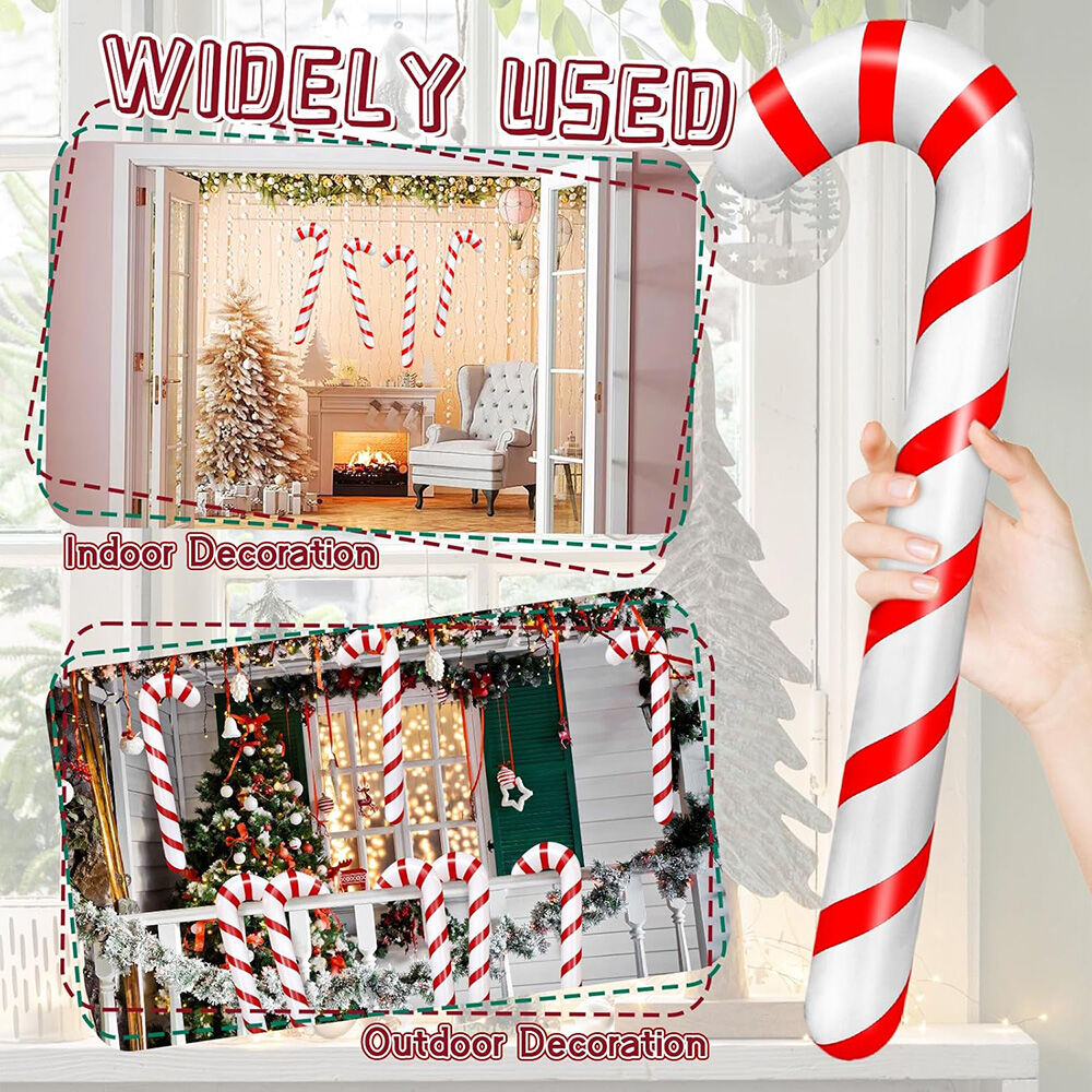 Inflatable candy canes decorations are designed in the shape of candy cane, which are fit for Christmas scene and add a Christmas touch; They are lightweight to hang on walls, store windows, curtains, railings and other places you want.