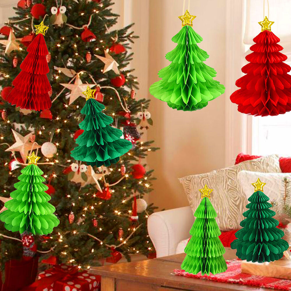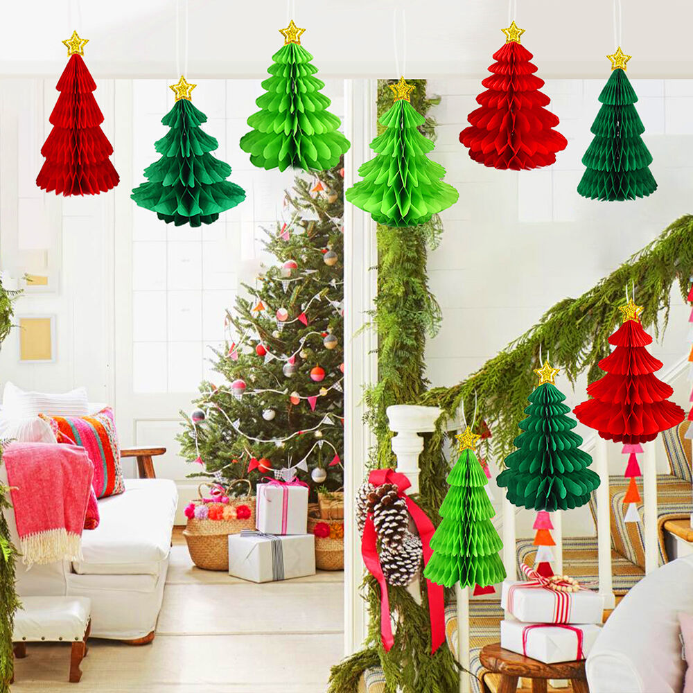 9 Pack Christmas Honeycomb Paper Tree 3d Paper Hanging Xmas Tree Decorations