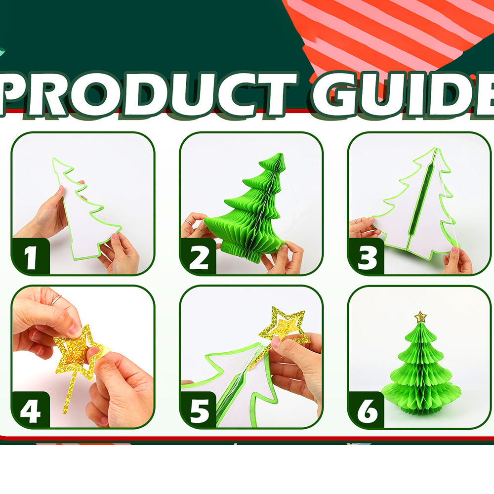 • Suitable Occasions:The paper honeycomb trees can be applied for Christmas party, birthday party, new year, etc., you can hang them on ceiling, and also can place them on the table to be centerpiece decoration, easy to attract other's attention.