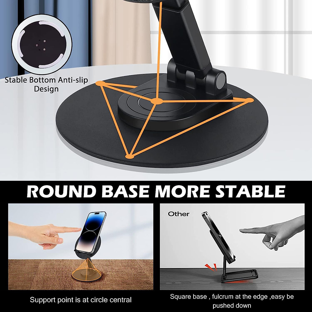 Adjustable Cell Phone Stand For Desk Fodable 360° Rotation Phone Holder With Mirror
