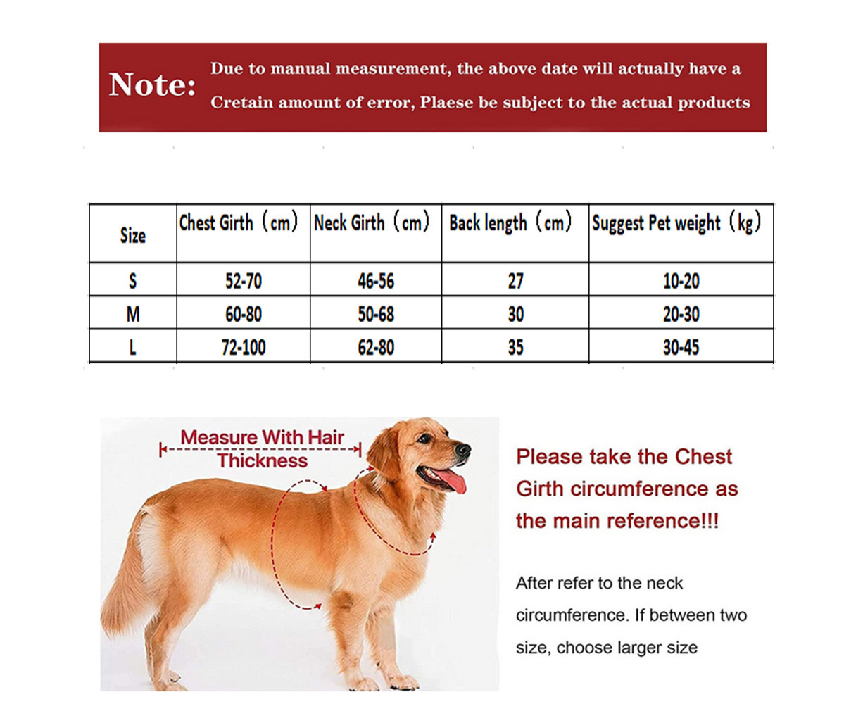Note: Please take the Chest Girth circumference as the main reference!!! After refer to the neck circumference. If between two size, choose larger size.