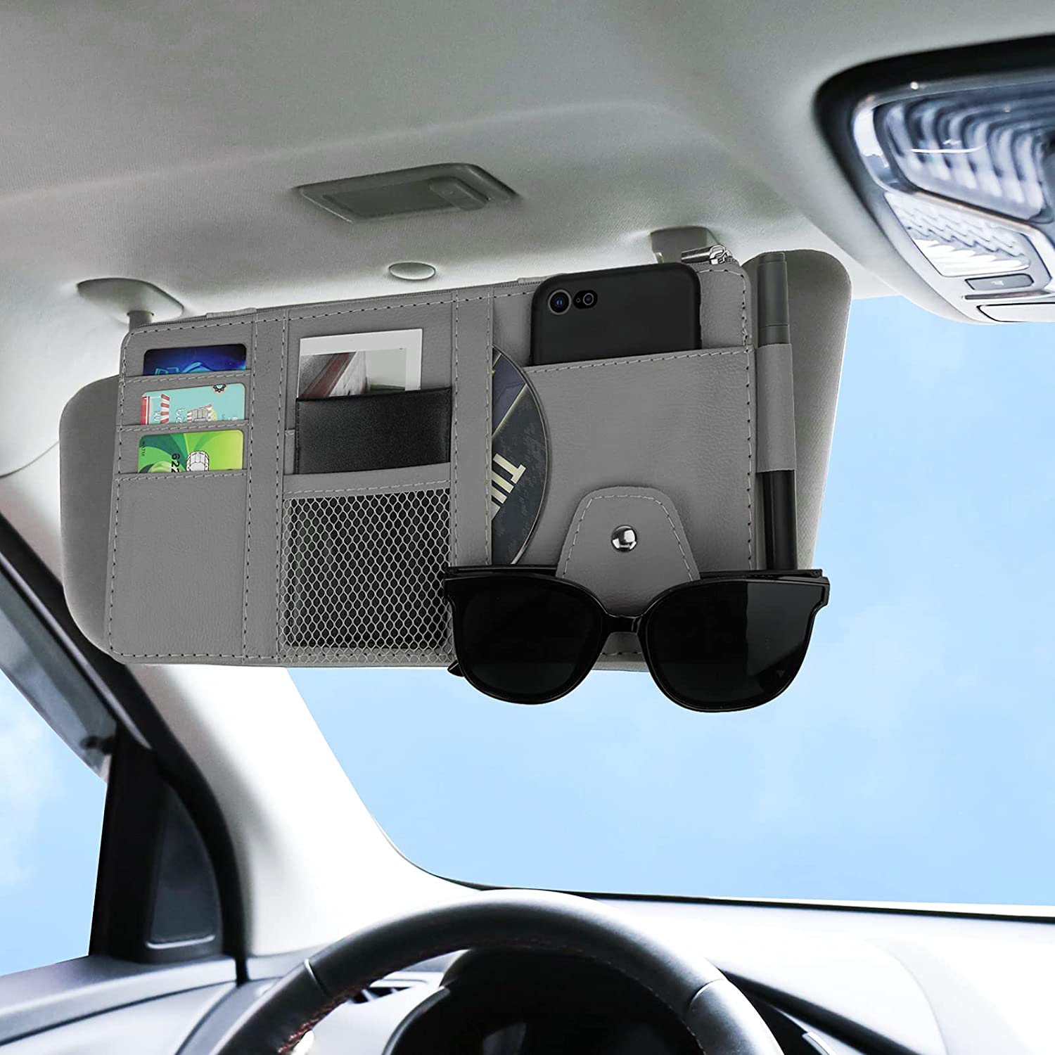 This sun visor organizer is perfectly designed to fit most car, SUV and truck sun visors, with a larg