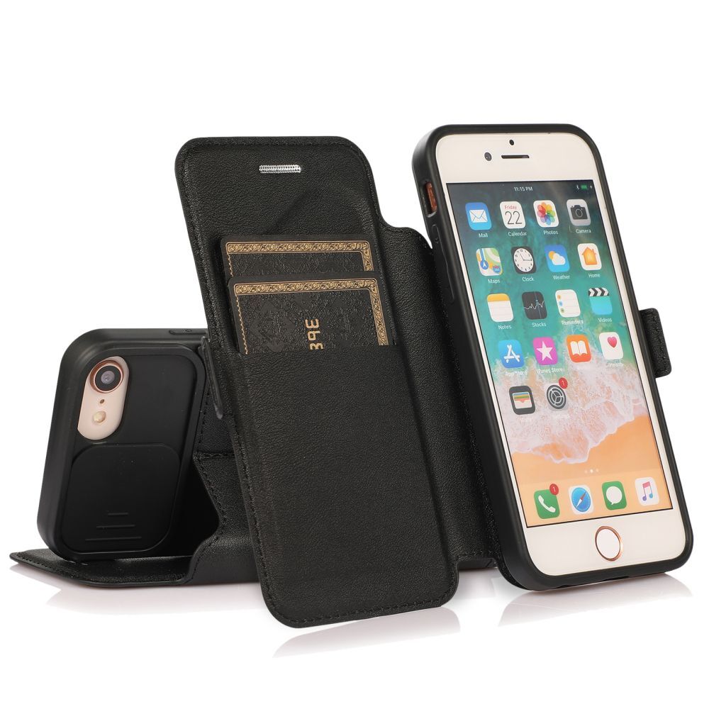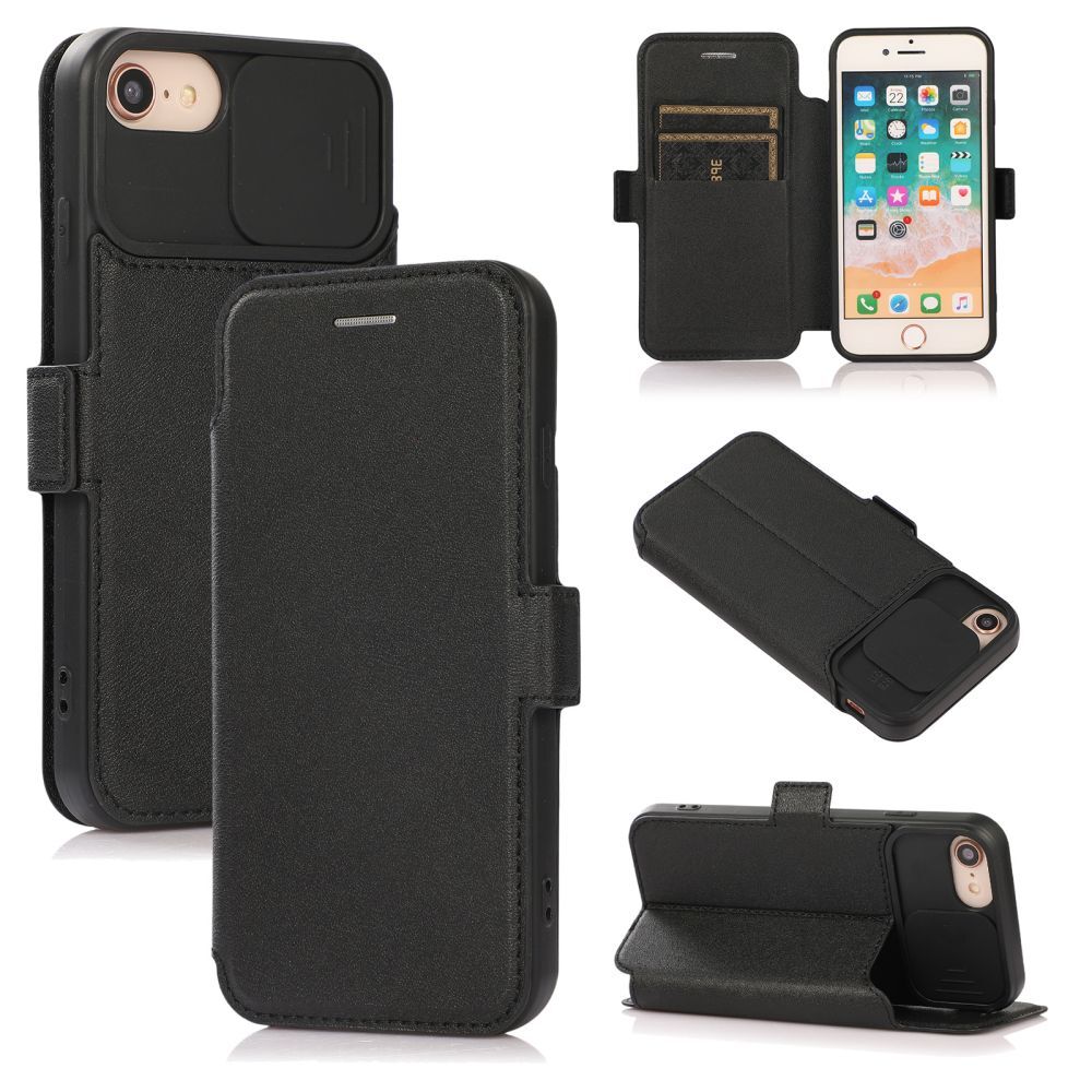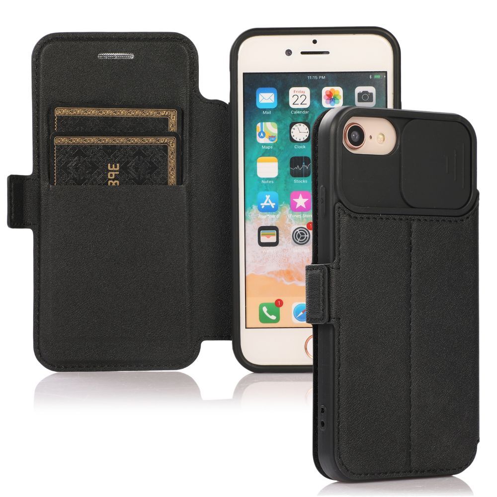 Card-Slot Phone Case With Slide Camera Cover For iPhone 6/7/8/SE2-Black