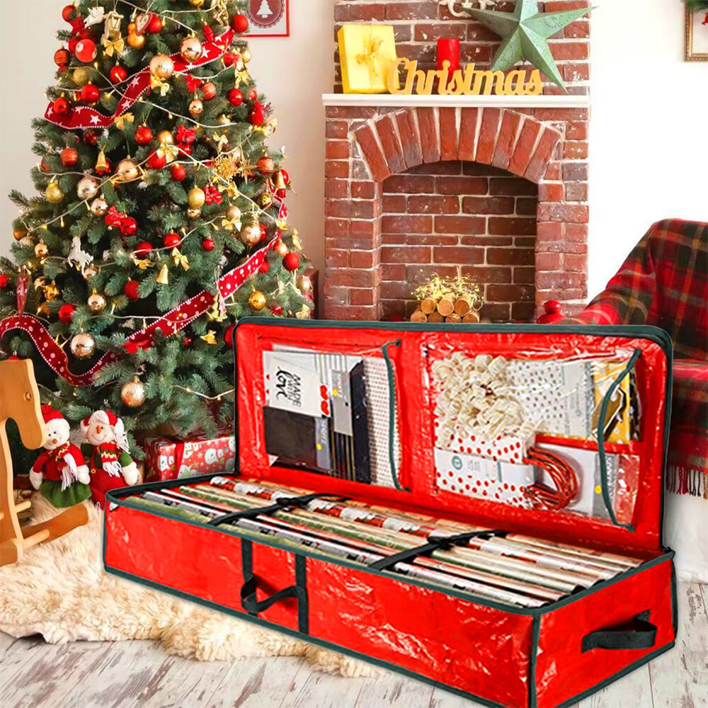 • Reinforced Handles:This Christmas storage box has two reinforced handles to support weight and make wrapping paper storage easy to transport.